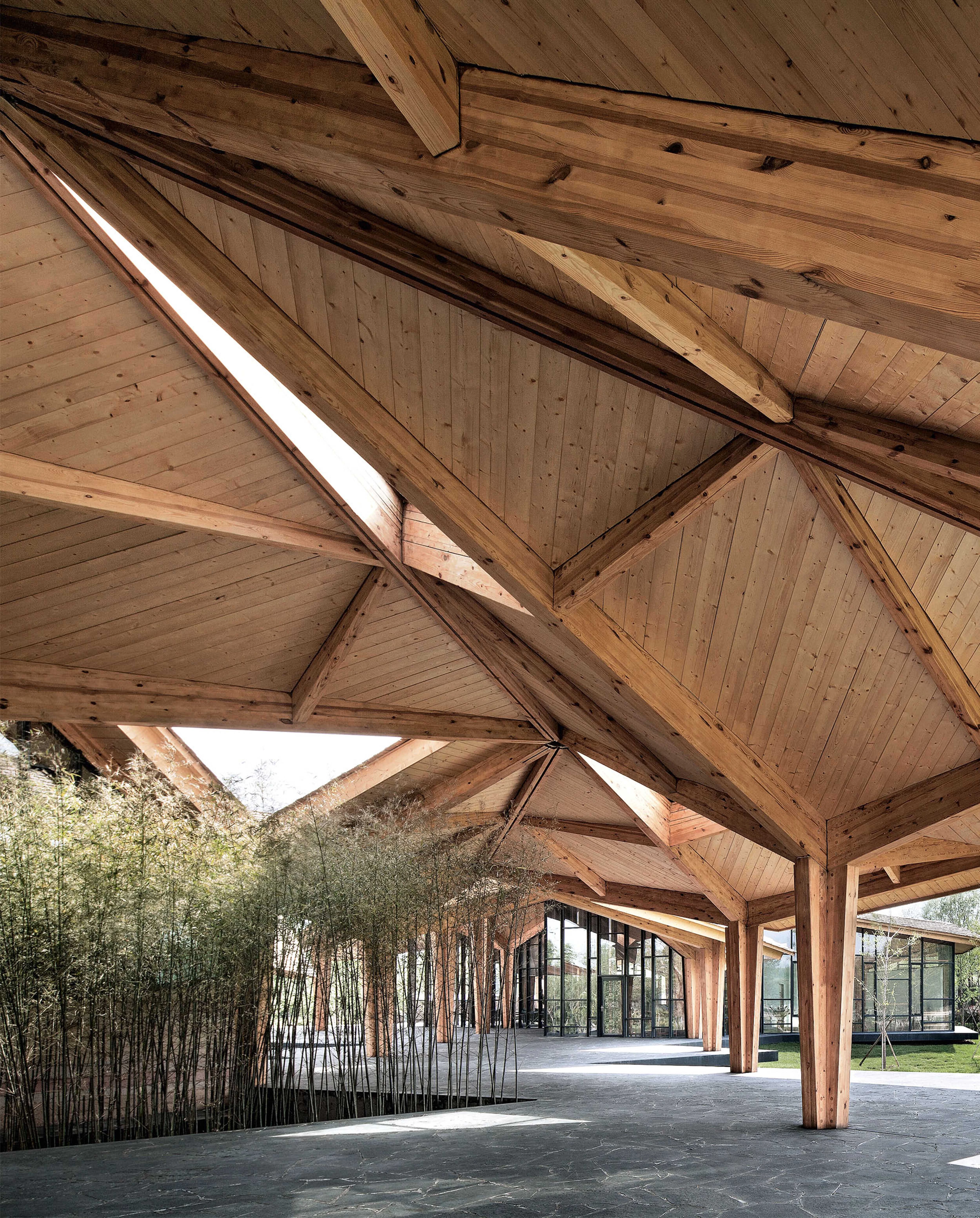 Levantado sobre una plataforma de hormigón que lo protege, el edificio busca adaptarse al entorno respetando los árboles existentes gracias a la repetición de una unidad básica: un pilar del que nacen cuatro vigas en voladizo a distintas alturas... [+]