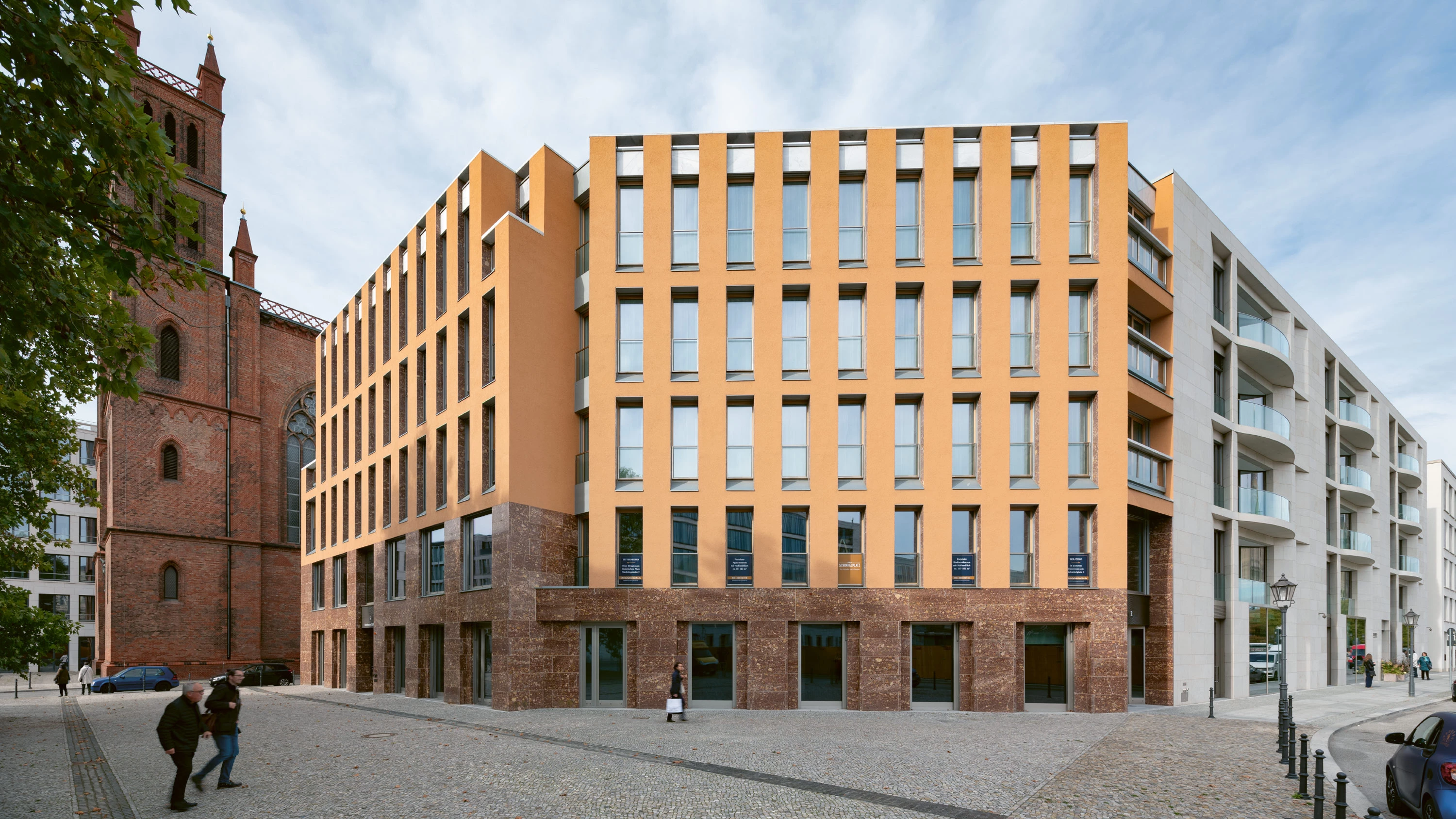 En el año 2005, el Ayuntamiento de Berlín convocó un concurso para definir la volumetría y las ordenanzas de la manzana comprendida entre la Schinkelplatz, la Strasse an der Kommandantur, la Niederlagstrasse y la plazuela configurada por dos proyectos de Schinkel, la Friedrichswerdersche Kirche y la Bauakademie, y el Ministerio de Asuntos Exteriores. Resultó vencedor el arquitecto Theo Brenner y, de acuerdo con su proyecto, se adjudicó el desarrollo de la citada manzana a la compañía Frankonia, con el compromiso de convocar otros concursos de arquitectura para llevar a cabo los distintos edificios que la compondrían. El proyecto que aquí se presenta resultó vencedor en el convocado en el año 2013 para los edificios que hacían acto de presencia en el ámbito comprendido entre la Friedrichswerdersche Kirche, la Bauakademie y el Ministerio de Asuntos Exteriores.