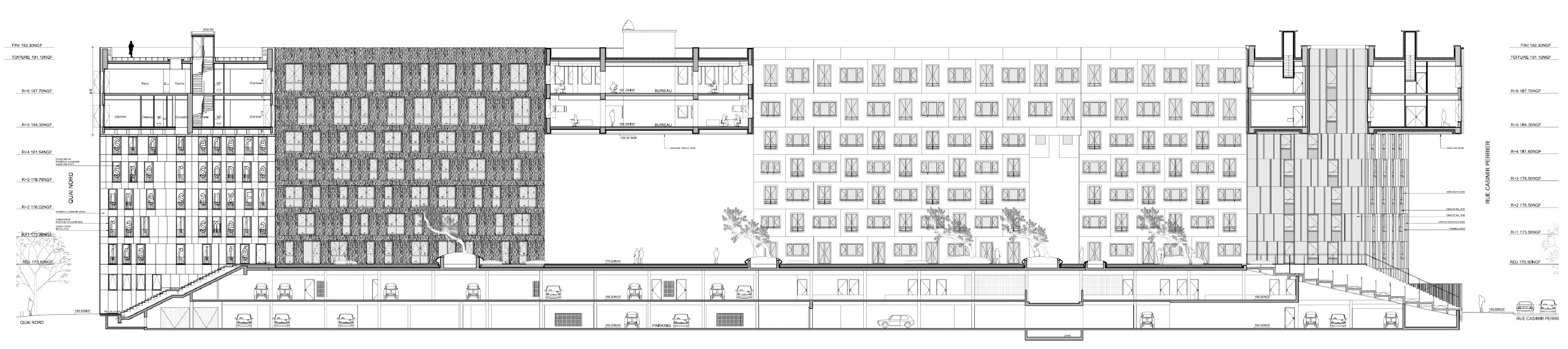 ECDM, EEA Erik van Egeraat Associated Architects, Pierre Gauthier Architects, Manuelle Gautrand Architects (diseño de sectores design of different sections); West 8 (paisajismo landscape); ALTO (servicios services); Khephren (estructura structure); Robert-Jan van Santen Ass. (fachadas facades); Yves Chicoteau (gestión nanagement); Ulcing Talhouet Ass. (economista economist)