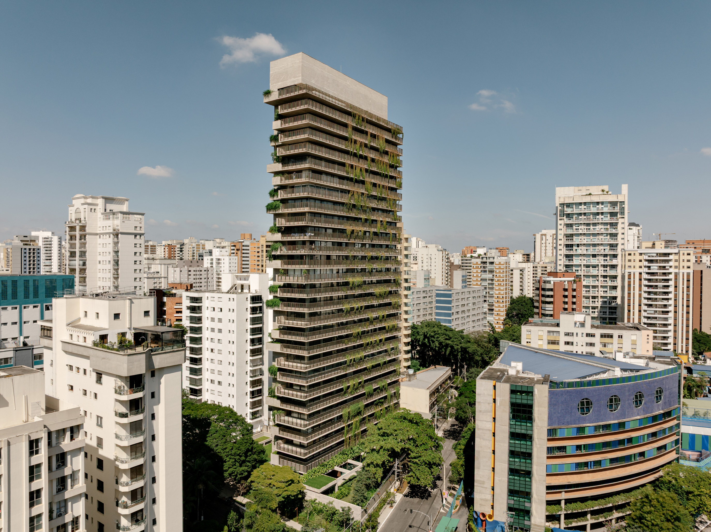 El edificio Ibaté está situado en una parcela en esquina del barrio de Vila Nova Conceição, en São Paulo, un área que actúa como zona de transición entre un eje urbano de alta densidad y un tejido residencial más bajo y tranquilo. Esta condición híbrida del entorno fue determinante para las decisiones de proyecto, especialmente en lo que respecta a la relación del edificio con la ciudad y a su forma de ocupación del terreno.