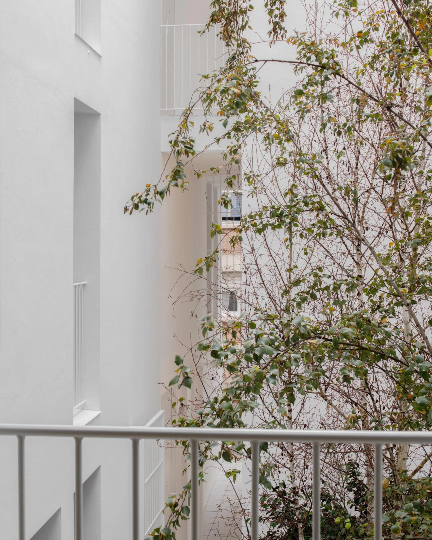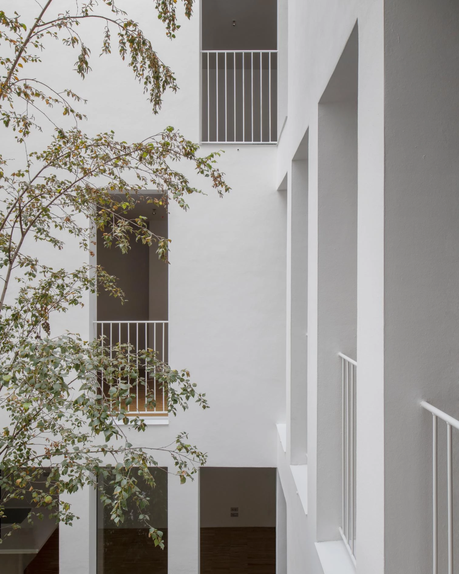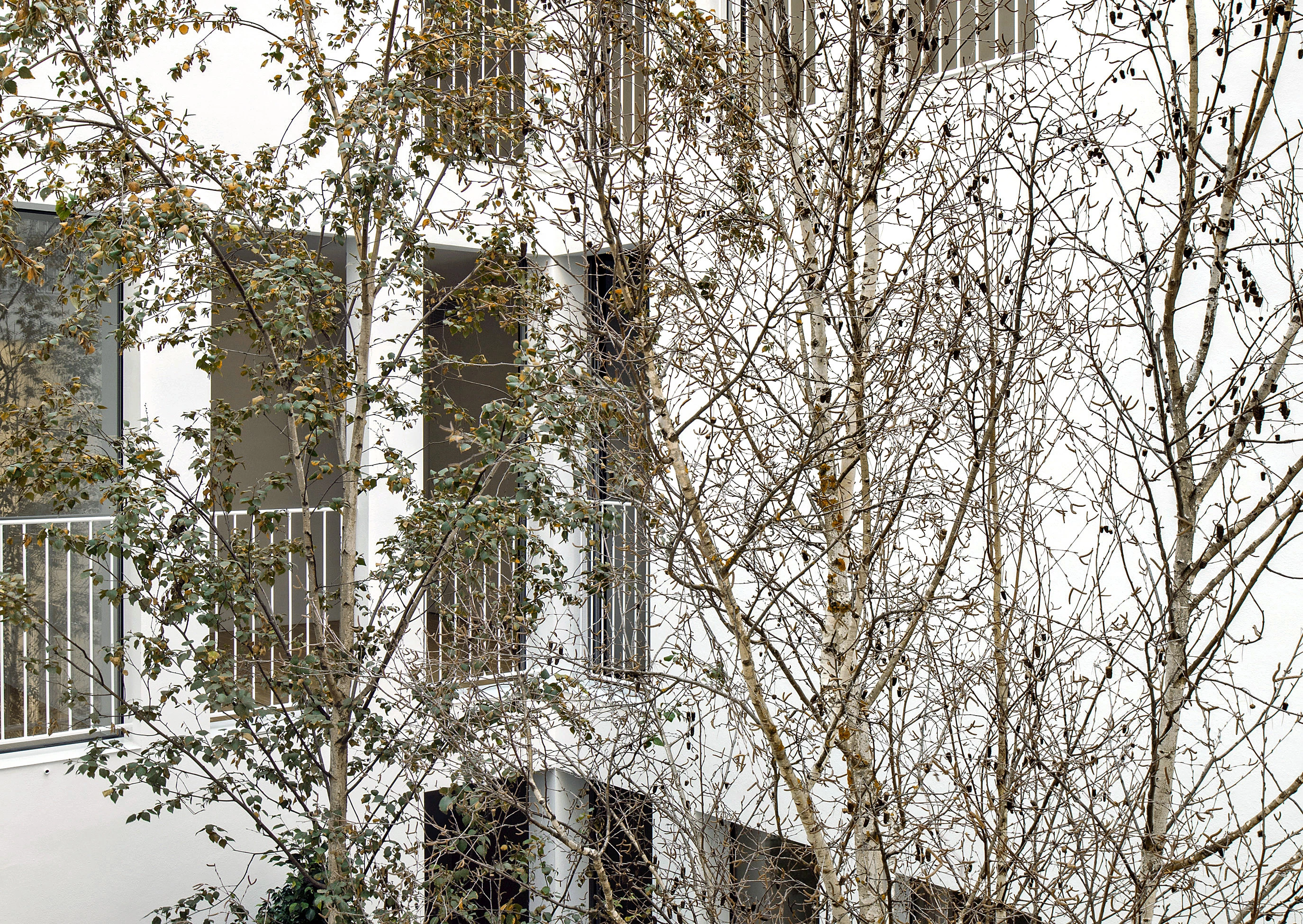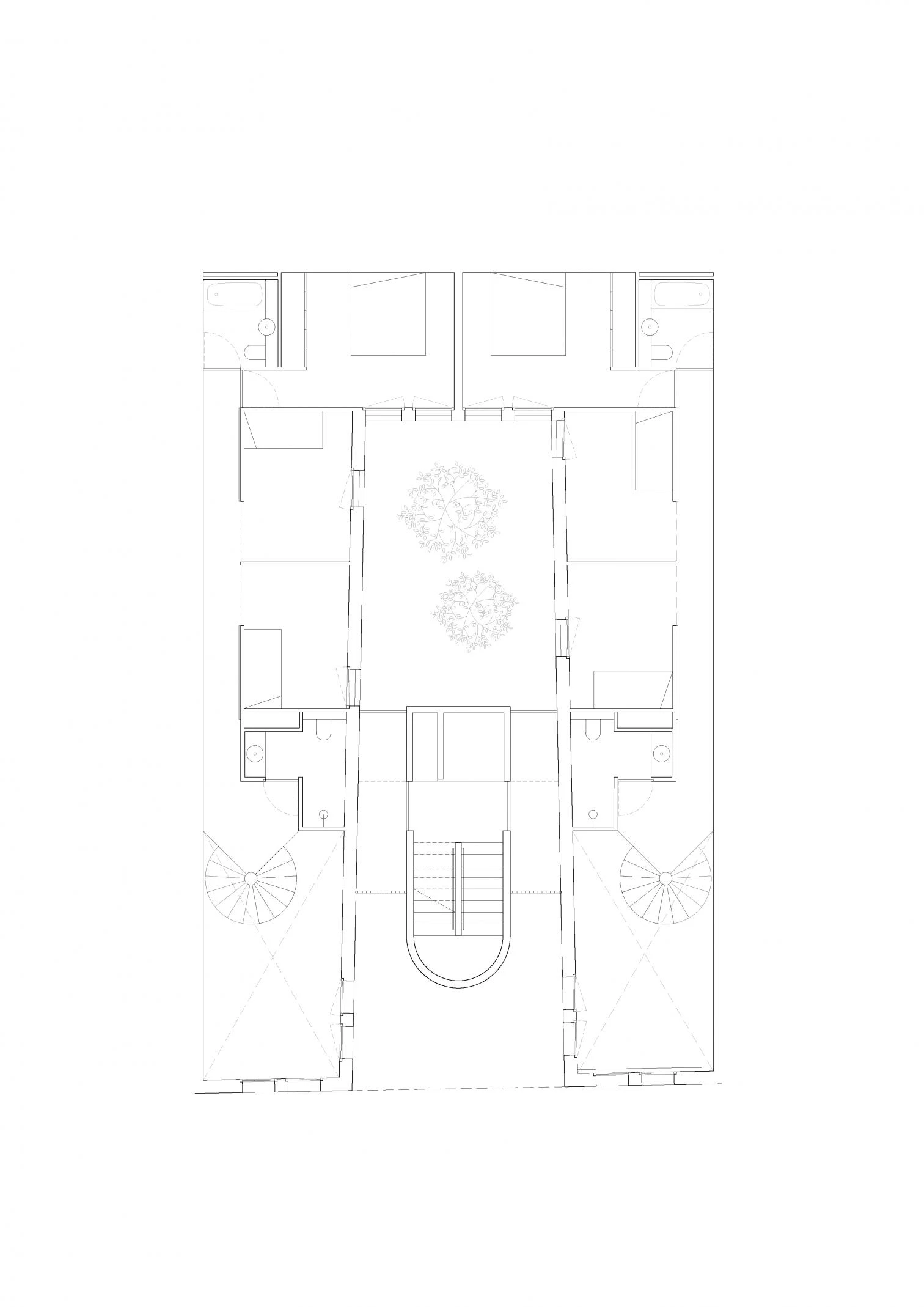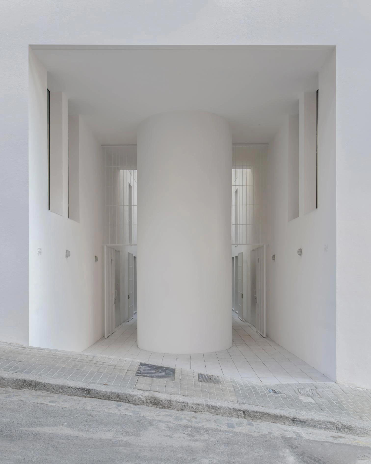 La firma catalana Arquitectura-G —liderada por Jonathan Arnabat, Jordi Ayala-Bril, Aitor Fuentes e Igor Urdampilleta— ha sido la encargada de proyectar este bloque de viviendas, que cuenta con cuatro apartamentos y dos dúplex. La calle Praga de Barcelona se pliega hacia el interior de la parcela formando un patio con vegetación al que se abren balcones a diferentes alturas. Este gesto genera un edificio de 1.000 metros cuadrados que no tiene trasera, sino un exterior urbano que ilumina y ventila todas las viviendas. El núcleo de comunicación es una pequeña torre que atraviesa el edificio, generando interferencias que enriquecen las tipologías de vivienda, donde se ha priorizado la flexibilidad de uso mediante divisorias móviles.