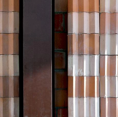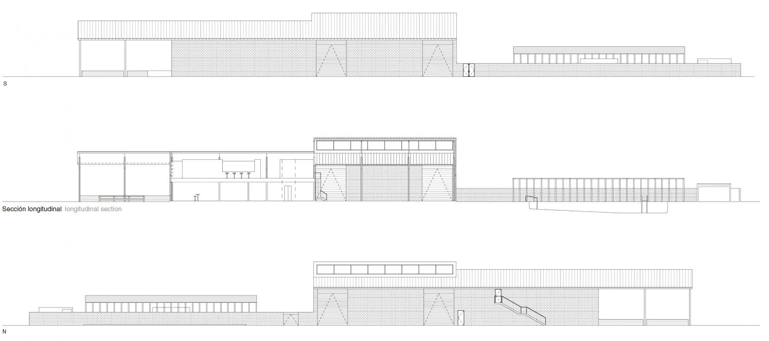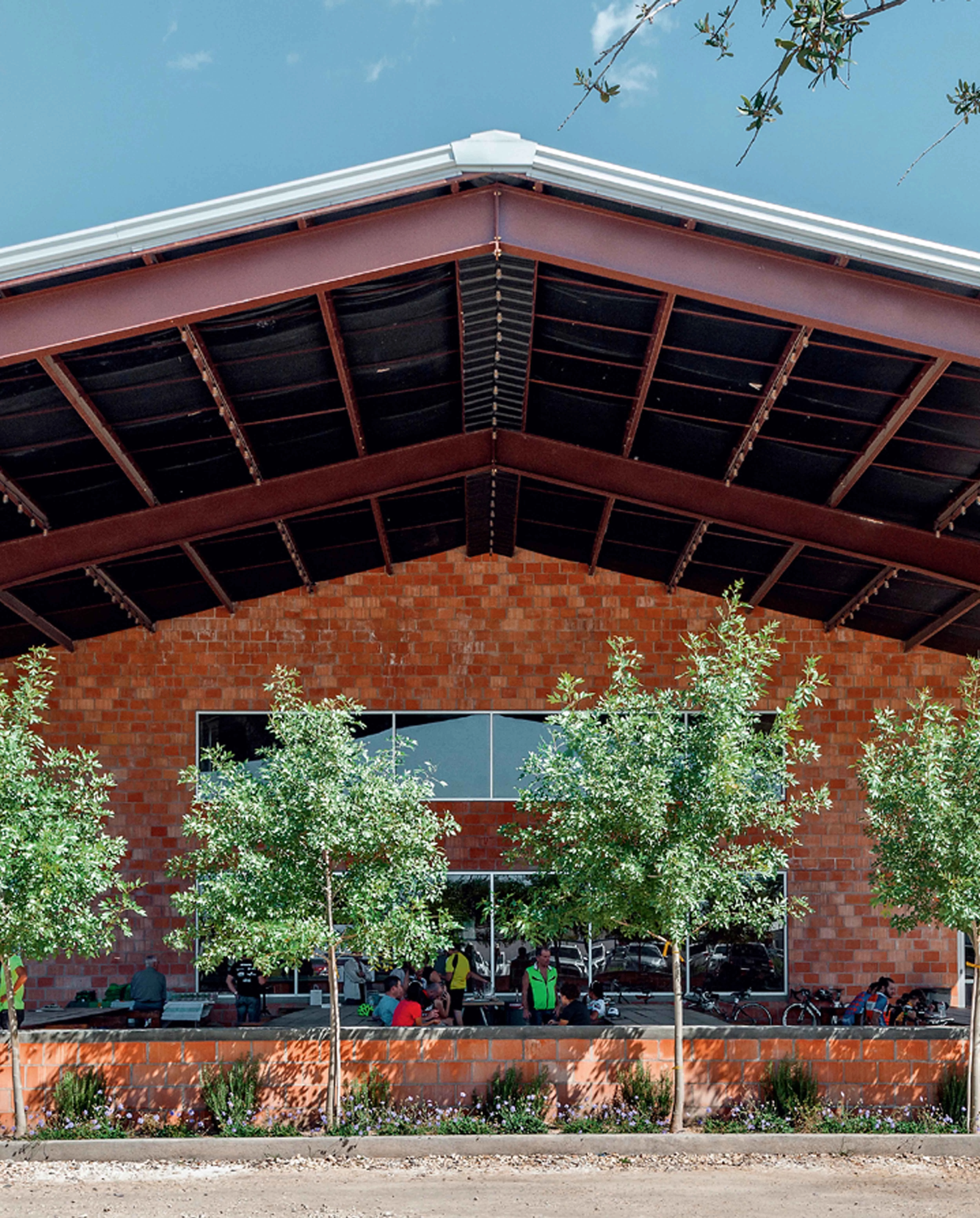 Construida en taller, aunque personalizada, la estructura de acero limita la anchura de los espacios interiores y exteriores del edificio para conformar un conjunto unitario y continuo que se define por la poderosa cubierta a dos aguas extendida desde el interior hasta el exterior. La trama de perfiles de acero se deja vista, pero los espacios intersticiales que quedan entre ellos se rellenan con bloques de arcilla D’Hanis, rescatados de entre las piezas desechadas en la fábrica de San Antonio. Industrial por su carácter y áspero por sus texturas, el Saint George Hall constituye un buen ejemplo de edificio capaz de dar cuenta de programas variados, funcionando como un contenedor y un telón para bodas, bailes, conciertos, películas, torneos de ping-pong, festivales locales o eventos sociales.