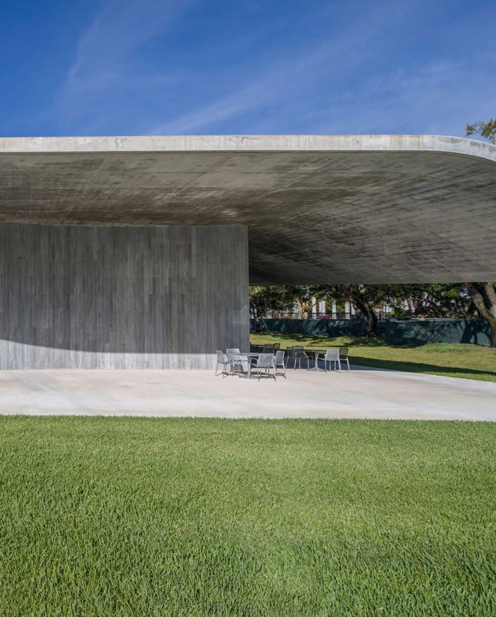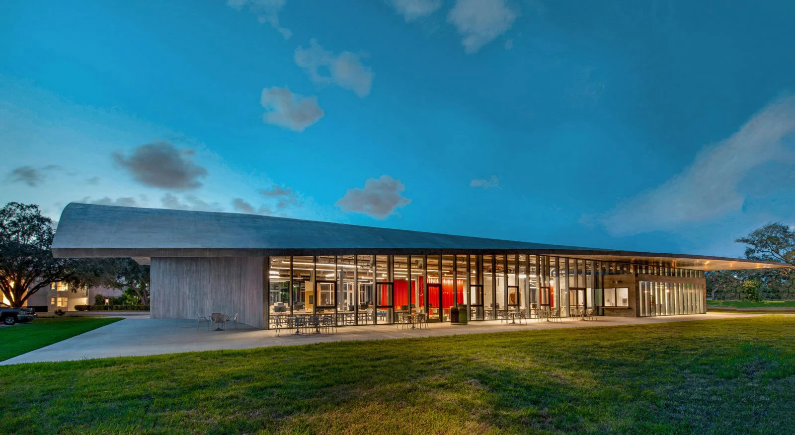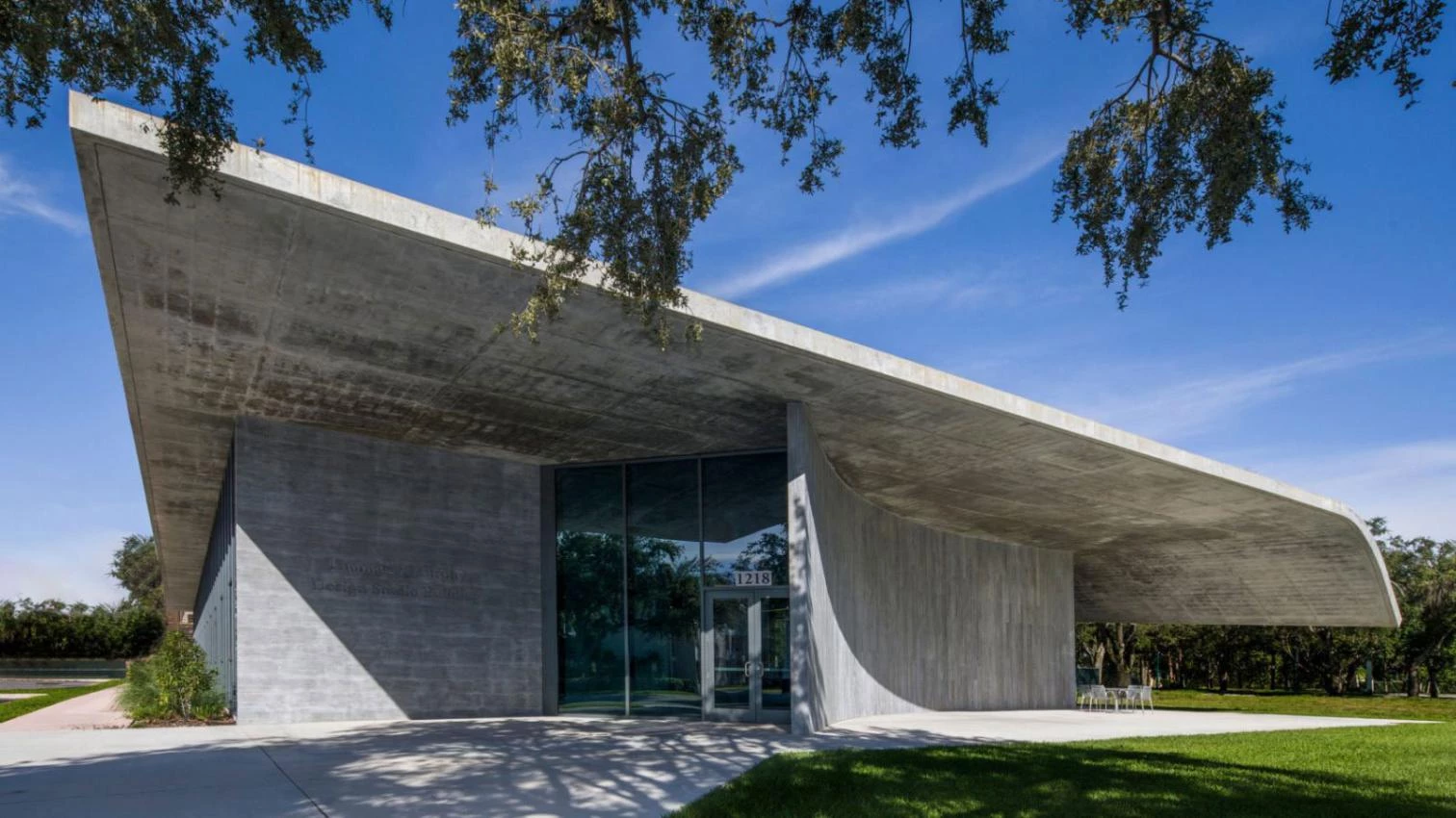 El edificio Thomas P. Murphy Design Studio es la última incorporación al campus de la Universidad de Miami en la ciudad de Coral Gables (Florida). La firma local Arquitectonica ha levantado para su escuela de arquitectura esta construcción de planta rectangular y 1.858 metros cuadrados, protegida por una amplia cubierta ondulada. La estructura de hormigón visto está sustentada por estrechas columnas de acero, y presenta fachadas con paneles de vidrio de suelo a techo resistentes a huracanes. El interior diáfano incorpora cortinas de tela rojiza para delimitar los espacios.