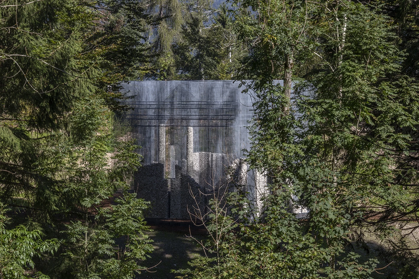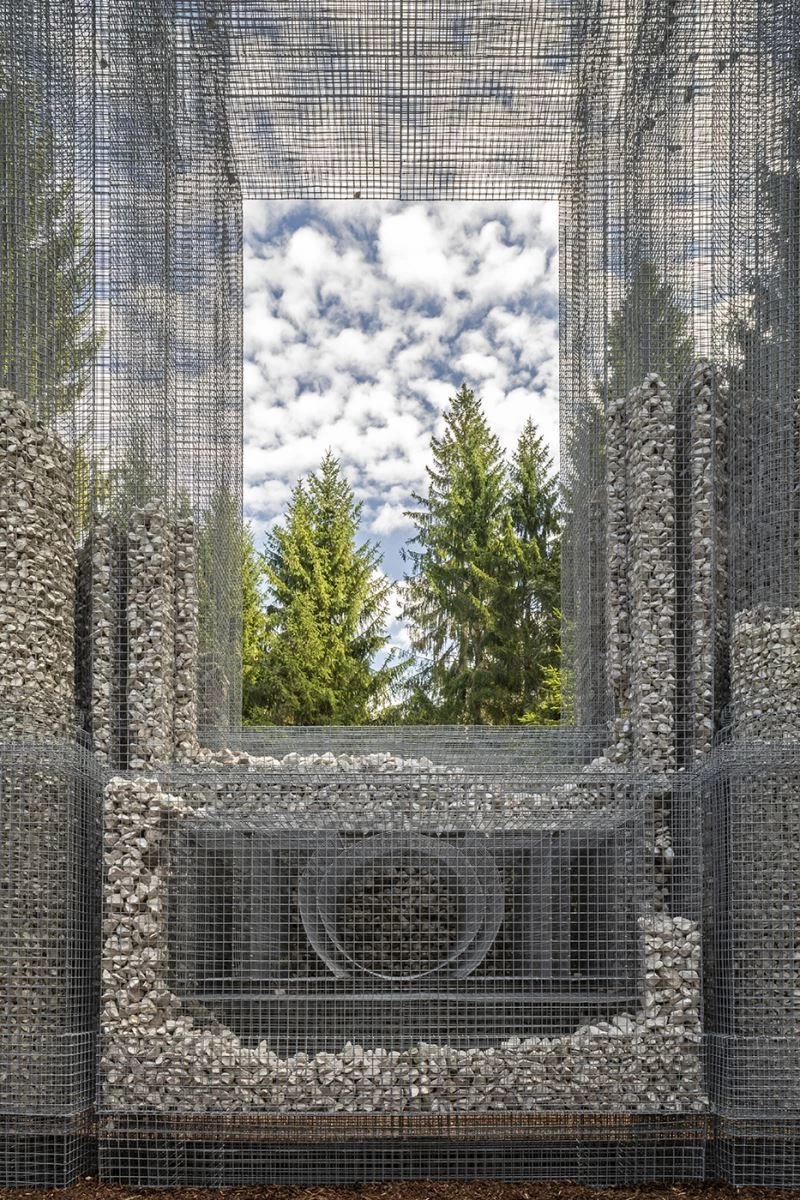 El artista italiano Edoardo Tresoldi (Cambiago, 1987) ha realizado una obra site-specific para el parque escultórico de Arte Sella, un museo al aire libre situado en Borgo Valsugana, una localidad de la provincia italiana de Trento. Dialogando con el entorno, el volumen translúcido Simbiosi forma parte de las investigaciones de Tresoldi basadas en la percepción experimental del espacio y la relación de la arquitectura y la naturaleza. Alcanzando los 5 metros de altura, la instalación escultórica a gran escala envuelve la transparencia de la ‘materia ausente’, expresada a través de mallas metálicas, y muestra la materialidad de las piedras locales. A la inversa del proceso de deterioro orgánico de los restos, la ‘ruina suspendida’ define y construye la forma de una estructura mental.