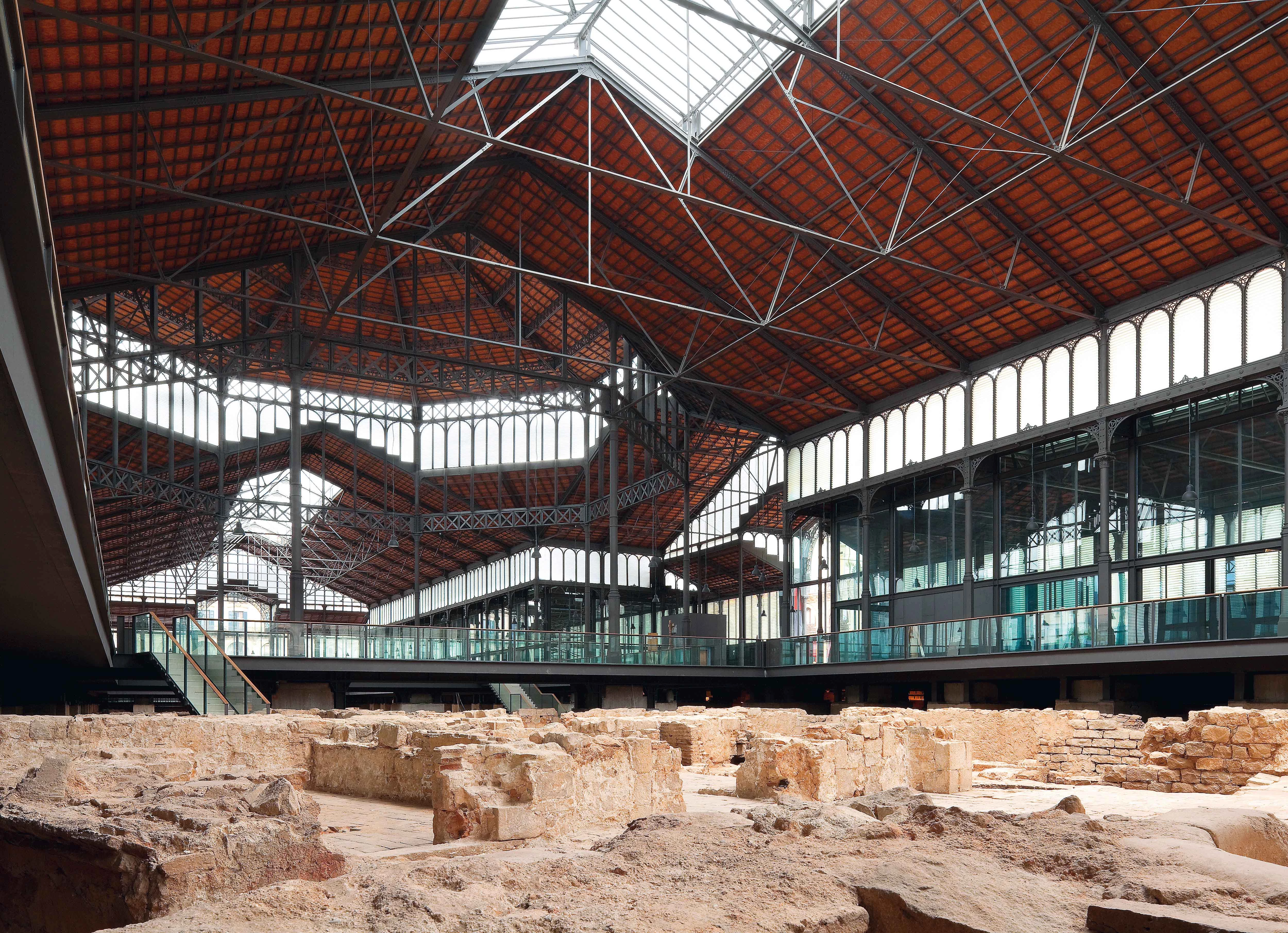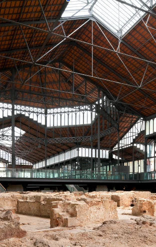 El edificio del antiguo mercado, con los restos de la ciudad antigua en su subsuelo, se restaura completamente. La antigüedad de la estructura y de los cerramientos, adaptados a la evolución de los usos del edificio a lo largo de su historia, junto a su deficiente estado de conservación, hicieron necesaria una actuación extensa, tanto para los elementos de la estructura de hierro y fundición, como en los cerramientos cerámicos y acristalamientos.