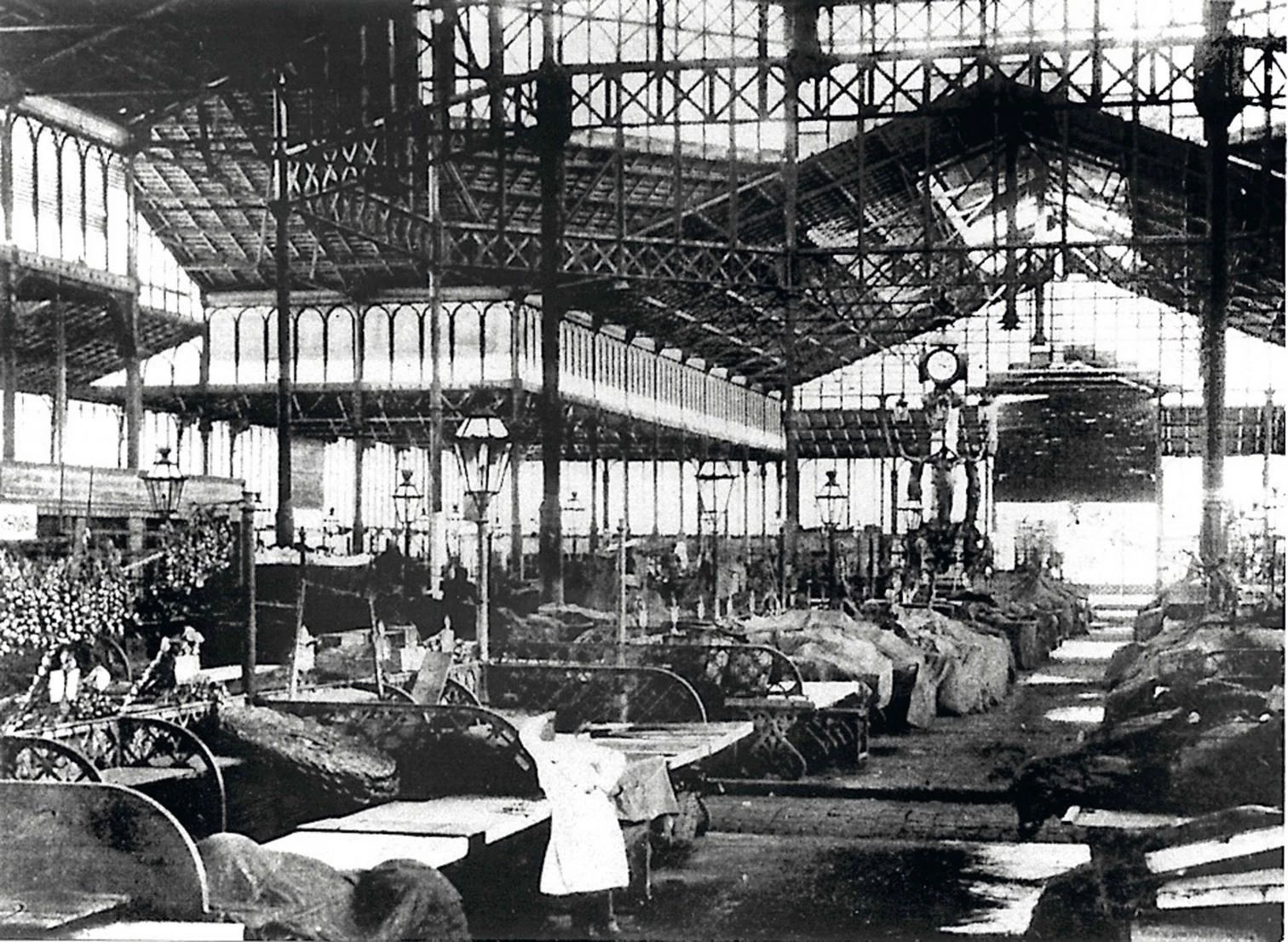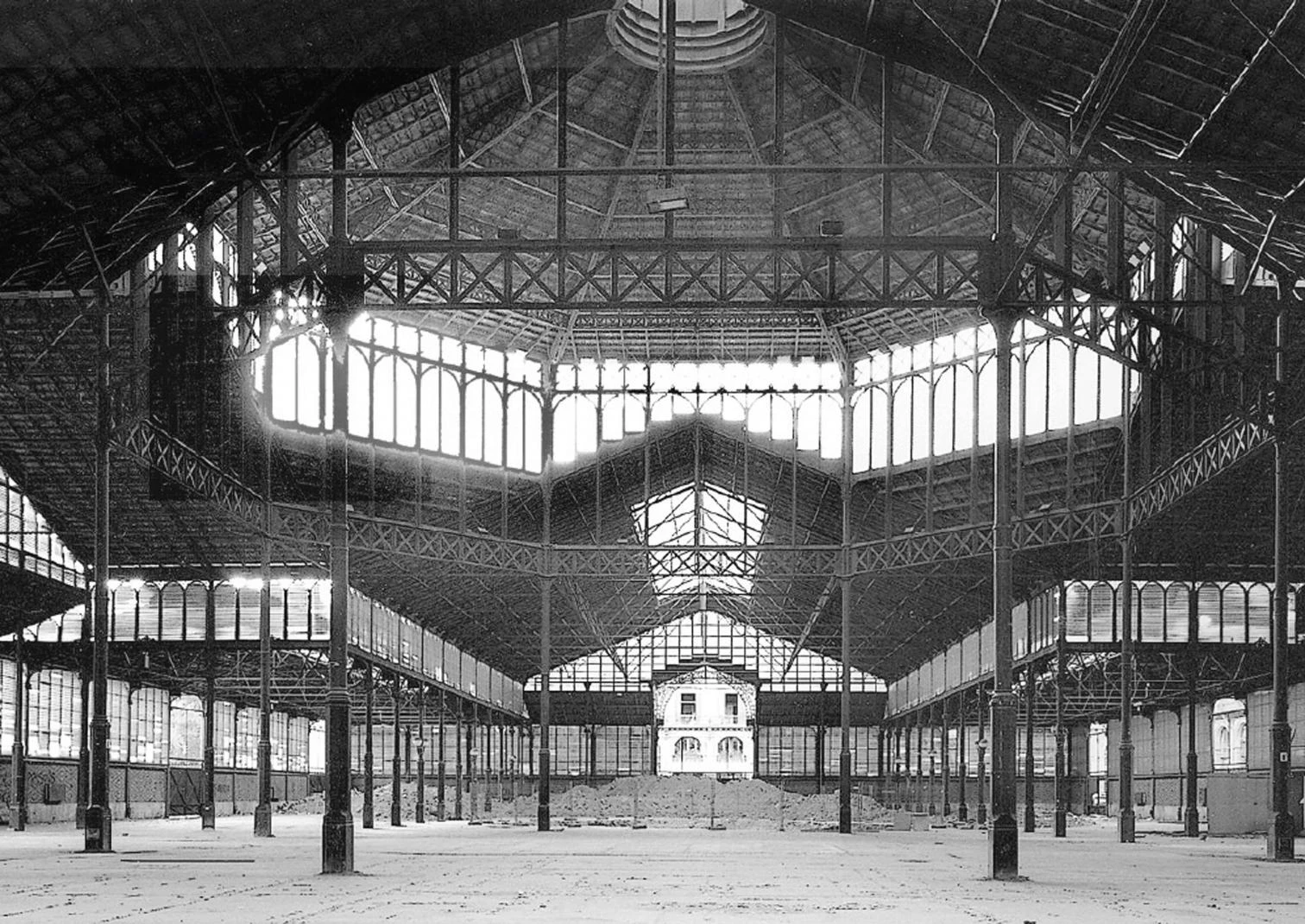 El mantenimiento de la cubierta original —donde las aguas pluviales se recogían por la propia estructura de fundición—, convierte el gran espacio central en una calle abierta protegida del exterior sólo parcialmente.