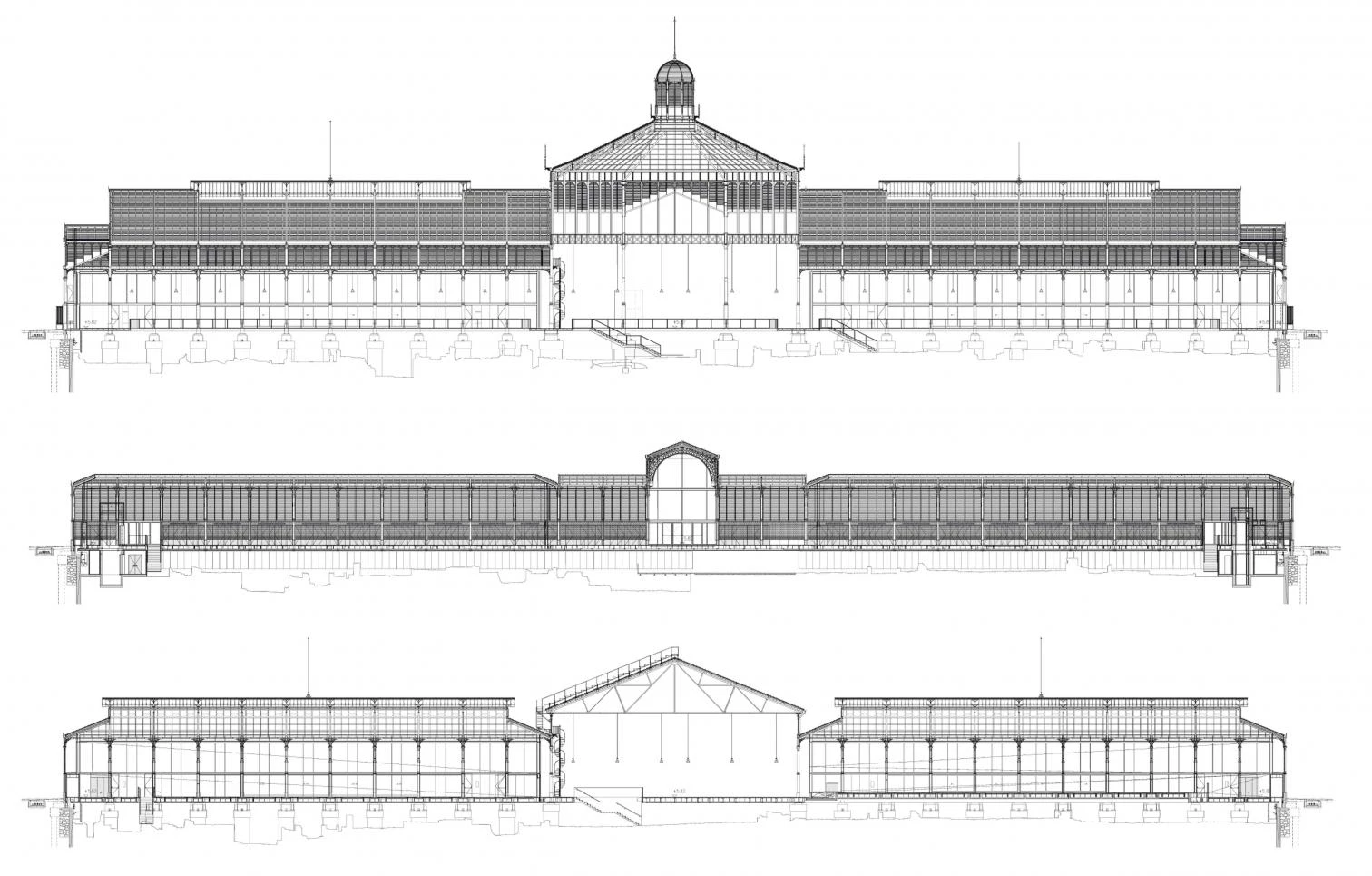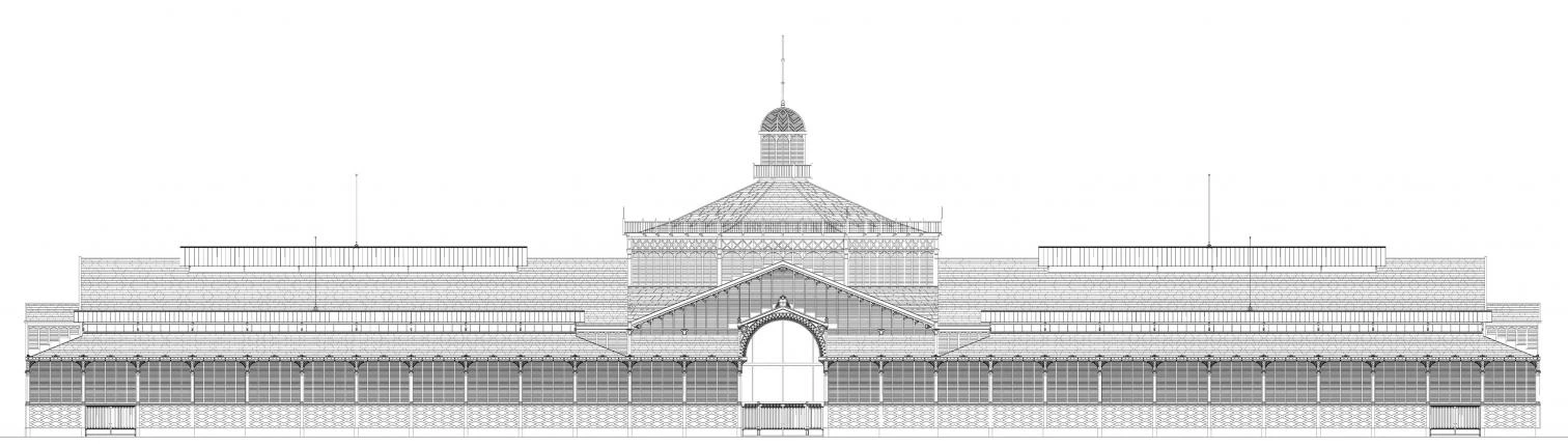 Así pues, se desmontaron y sustituyeron todas las piezas estructurales de fundición gravemente comprometidas según el proceso de fabricación tradicional, y se limpiaron y repararon el resto de estructuras de fundición y hierro que conforman la cubierta del edificio. Esta se renovó dotándola de mejores condiciones de aislamiento y en su recubrimiento exterior se usaron tejas de las mismas medidas de las existentes, y que además reproducen su variedad cromática. También se sustituyeron los cerramientos acristalados y cerámicos, coherentemente con las medidas y sujeciones originales de las piezas.