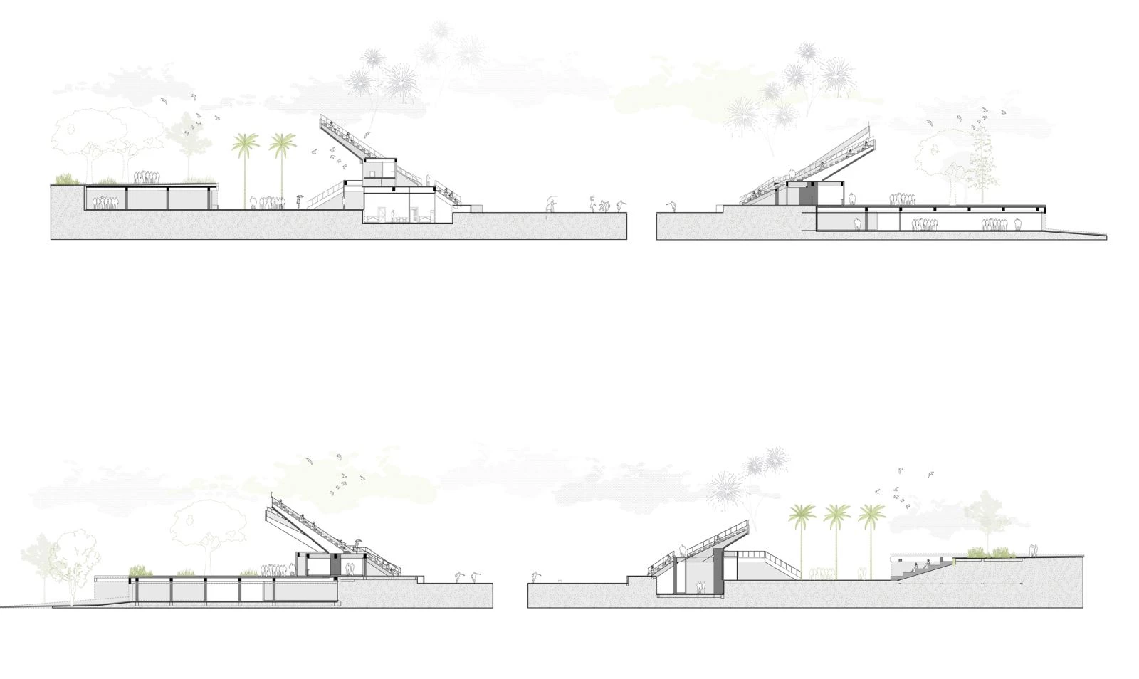 Con el fin de lograr esa mayor diversidad de uso y al mismo tiempo relacionar el estadio con el espacio público exterior, las tribunas se fracturan en varios grupos. Esta estrategia permite zonificar y agrupar diferentes tribunas y espacios para albergar tanto eventos de carnaval como zonas de pícnic, área de conciertos, de baile, etc., convirtiendo el estadio en un lugar de referencia para las celebraciones caribeñas. Se consigue además que el verde del parque colindante pase a formar parte del estadio, y que desde el exterior se pueda entrever lo que ocurre en el interior. De esta manera, el nuevo estadio no es sólo una estructura cerrada destinada a eventos deportivos, sino que se convierte en un espacio abierto al público y capaz de albergar actividades muy diversas.