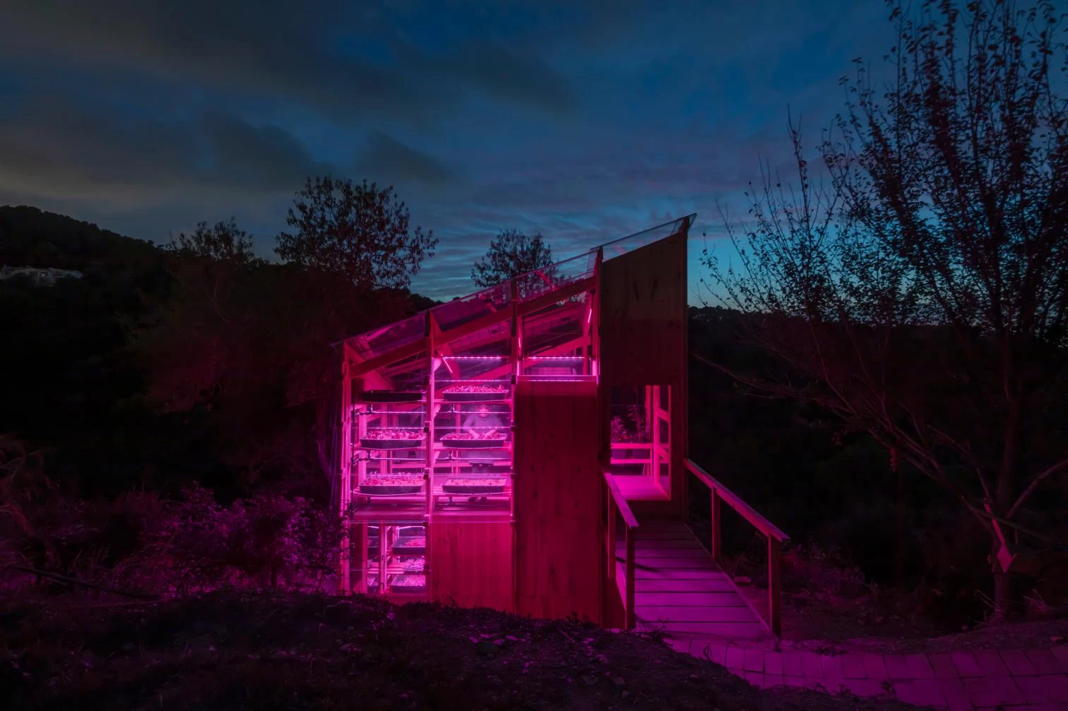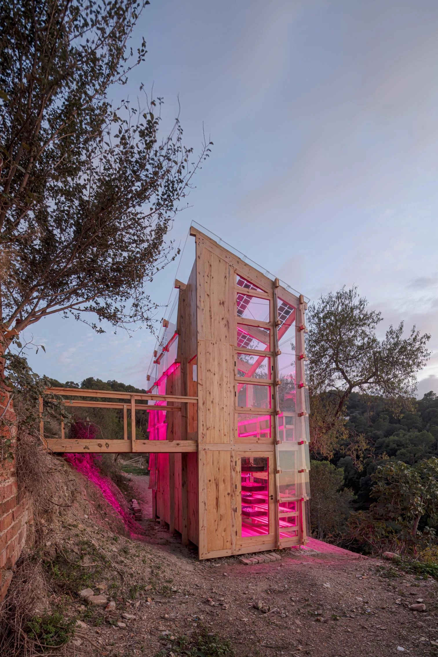 El pabellón Solar Greenhouse para el cultivo autosuficiente se sitúa en el parque natural de Collserola, a las afueras de Barcelona. A pocos metros de esta construcción se encuentra la sede de Valldaura Labs, el campus creado por el Instituto de Arquitectura Avanzada de Cataluña (IAAC), orientado a la investigación y la educación para el hábitat autosuficiente, desde donde se ha desarrollado este proyecto, que ha sido concebido para poder ser adaptado también a entornos urbanos.