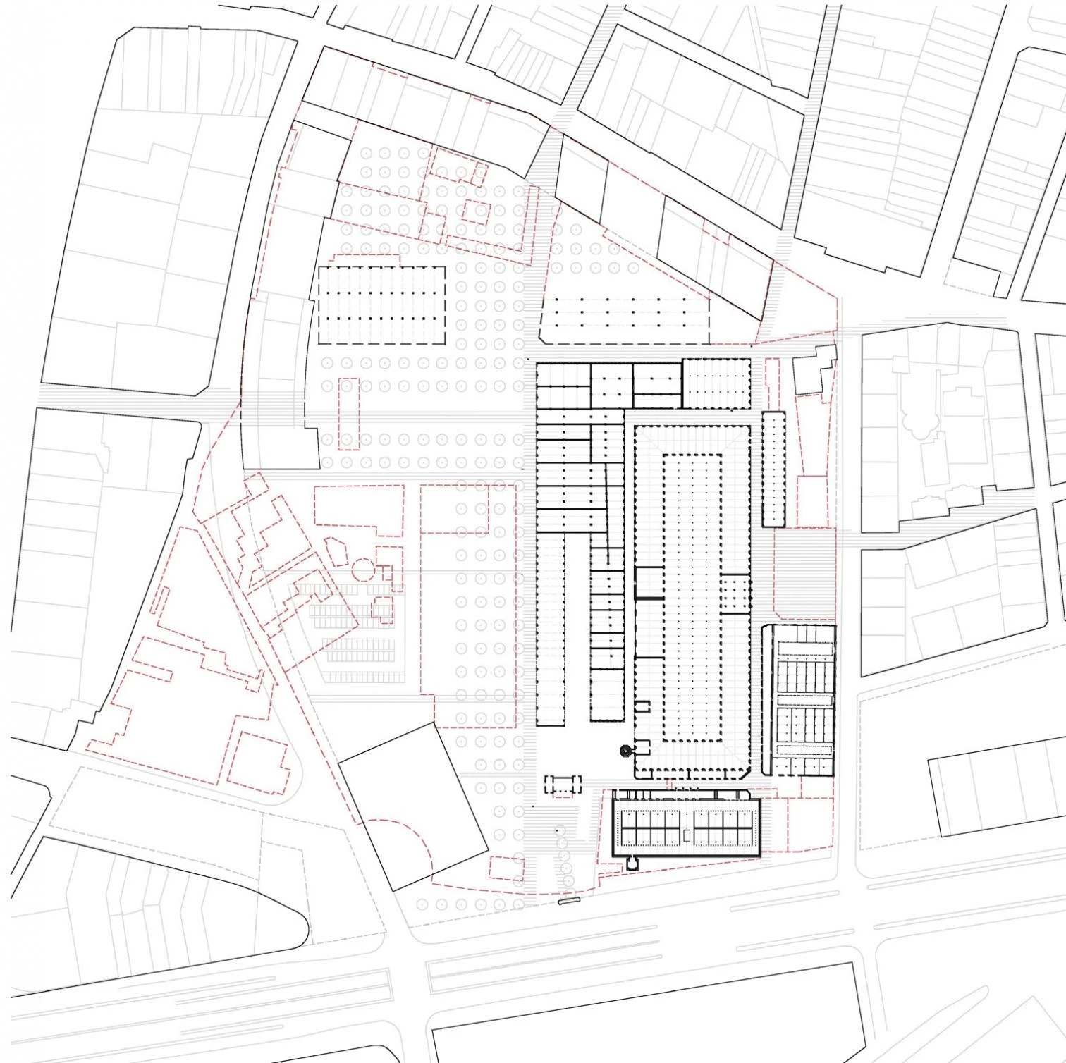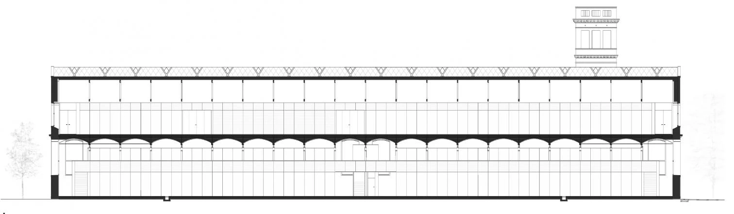 La propuesta parte de la voluntad de abordar la intervención en el patrimonio desde el respeto hacia los rasgos tipológicos originales y, al mismo tiempo, desde su condición reversible. Así, se decide ubicar el programa de menor dimensión y mayor repetición en planta baja, ya que la estructura de pilares existentes, densa y modular, permite una mejor adaptación; los espacios de mayor dimensión se sitúan en la planta primera, ya que su estructura de cerchas permite áreas más diáfanas. El proyecto ofrece en todo momento una lectura clara y diferenciada entre la arquitectura industrial preexistente y la implantación de los nuevos usos.