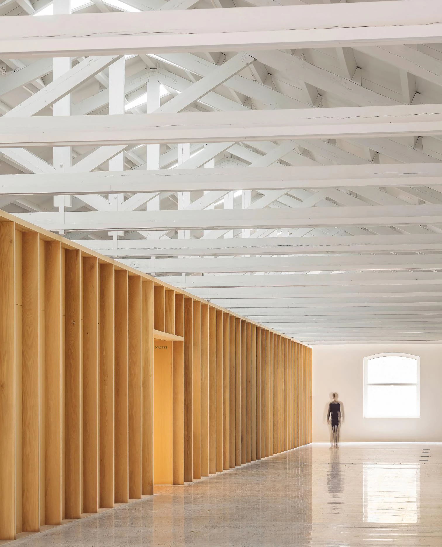 Los espacios menores se disponen en planta baja, con una estructura de pilares densa y modular que permite una mejor adaptación; los mayores se sitúan en la primera, cuya estructura de cerchas permite áreas más diáfanas.