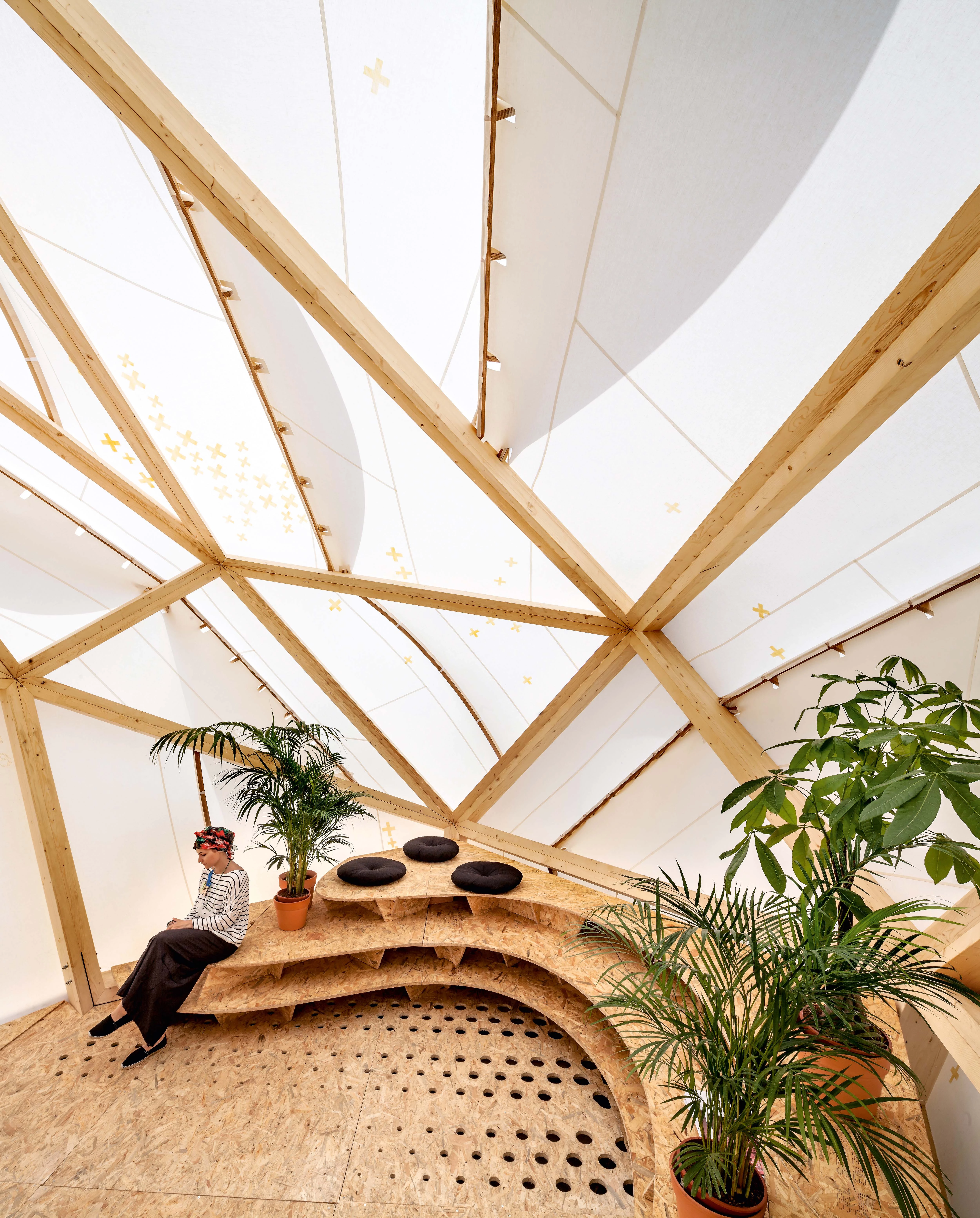 Proyectada en dos meses, fabricada en cinco días y ensamblada en cuatro, la cúpula bioclimática está diseñada para asegurar el consumo cero: al optimizar la incidencia del viento y la radiación solar, depende solamente de los sistemas pasivos de climatización.