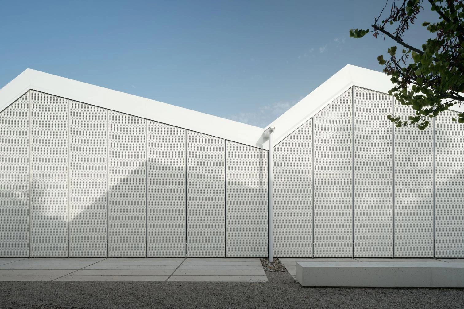 El exterior es de ladrillo negro: una arquitectura ‘de tapias’, de textura, materialidad y color, capaz de transmitir un cierto misterio que evoca el mundo interior de creación. Por oposición, el interior está diseñado como un espacio tecnológico, blanco y luminoso, con alusiones formales a la arquitectura industrial, de producción y fabricación.