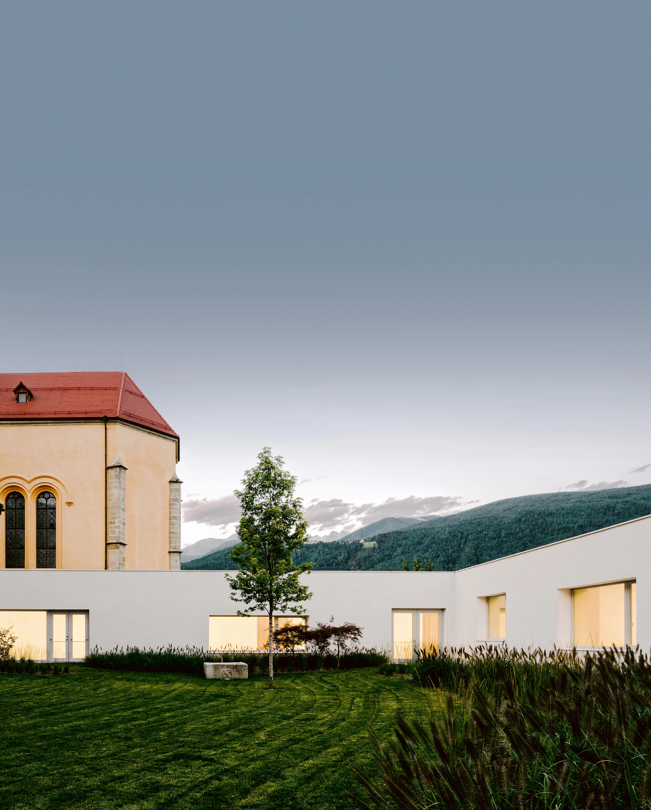 El centro histórico de Brunico, un pequeño municipio situado en la provincia de Bolzano de los Alpes italianos, presenta una aglomeración urbana única compuesta por un conjunto de villas aristocráticas con grandes jardines rodeados por tapias. Una de estas antiguas construcciones palaciegas alberga la escuela de música Ragenhaus. El proyecto de reforma y ampliación conserva el carácter de la preexistencia y propone una relación respetuosa con el contexto urbano. La intervención, anónima y sobria tanto en su condición formal y material, recupera la tipología característica del lugar ocupando el perímetro del solar dando lugar una suerte de ‘muro habitado’ que completa la estructura original de la villa. El nuevo edificio cuenta con dos niveles, una planta semienterrada, y otra en superficie que delimita el jardín, un espacio que se convierte en el elemento central del proyecto y de conexión entre el edificio existente y su extensión. Mientras, la rehabilitación de la Casa Ragen se caracteriza por la transformación espacial de su patio interior. Una nueva cubierta caracteriza y reconfigura este espacio mediante un preciso sistema de lucernarios que cuentan con un conjunto de lamas regulables para regular la entrada de luz natural en el interior...[+][+][+]