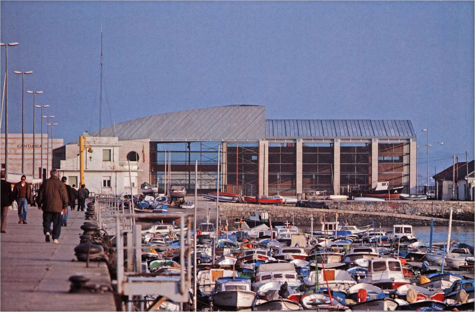 La fachada al puerto toma la forma de un gran pórtico acristalado, que se cierra en la trasera. La gran cubierta curva revestida de zinc muestra evidentes referencias al entorno náutico.