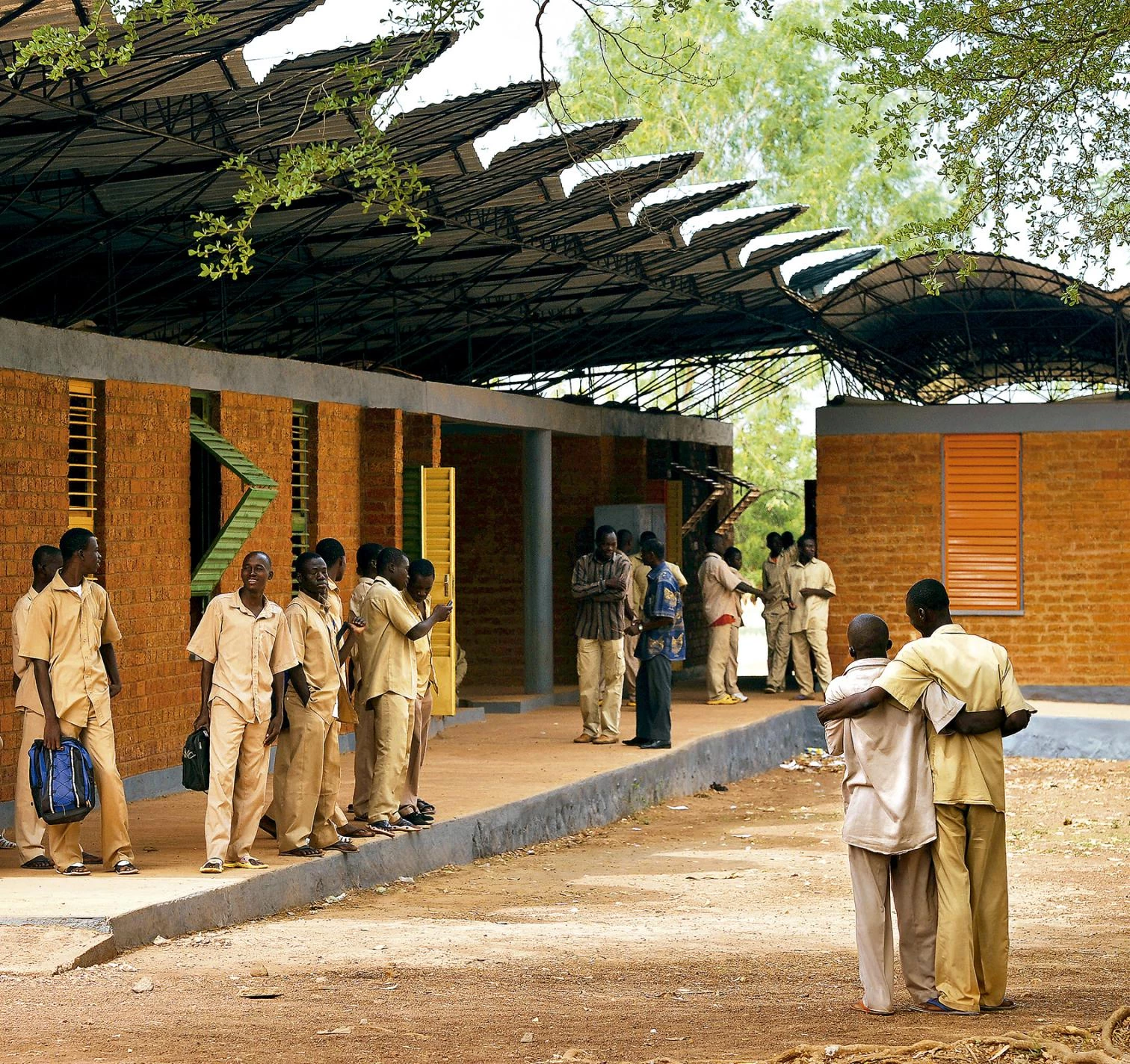 En continuidad con las estrategias aplicadas en la escuela primaria de Gando, el objetivo de este proyecto era diseñar una escuela sostenible, que se adaptara a las condiciones extremas de Burkina Faso. Su construcción se ha llevado a cabo en cooperación con trabajadores que se formaron en otros edificios financiados por la organización fundada por Kéré ‘Schulbausteine für Gando’, de manera que gracias a la participación el impacto social continúa una vez terminado el edificio.