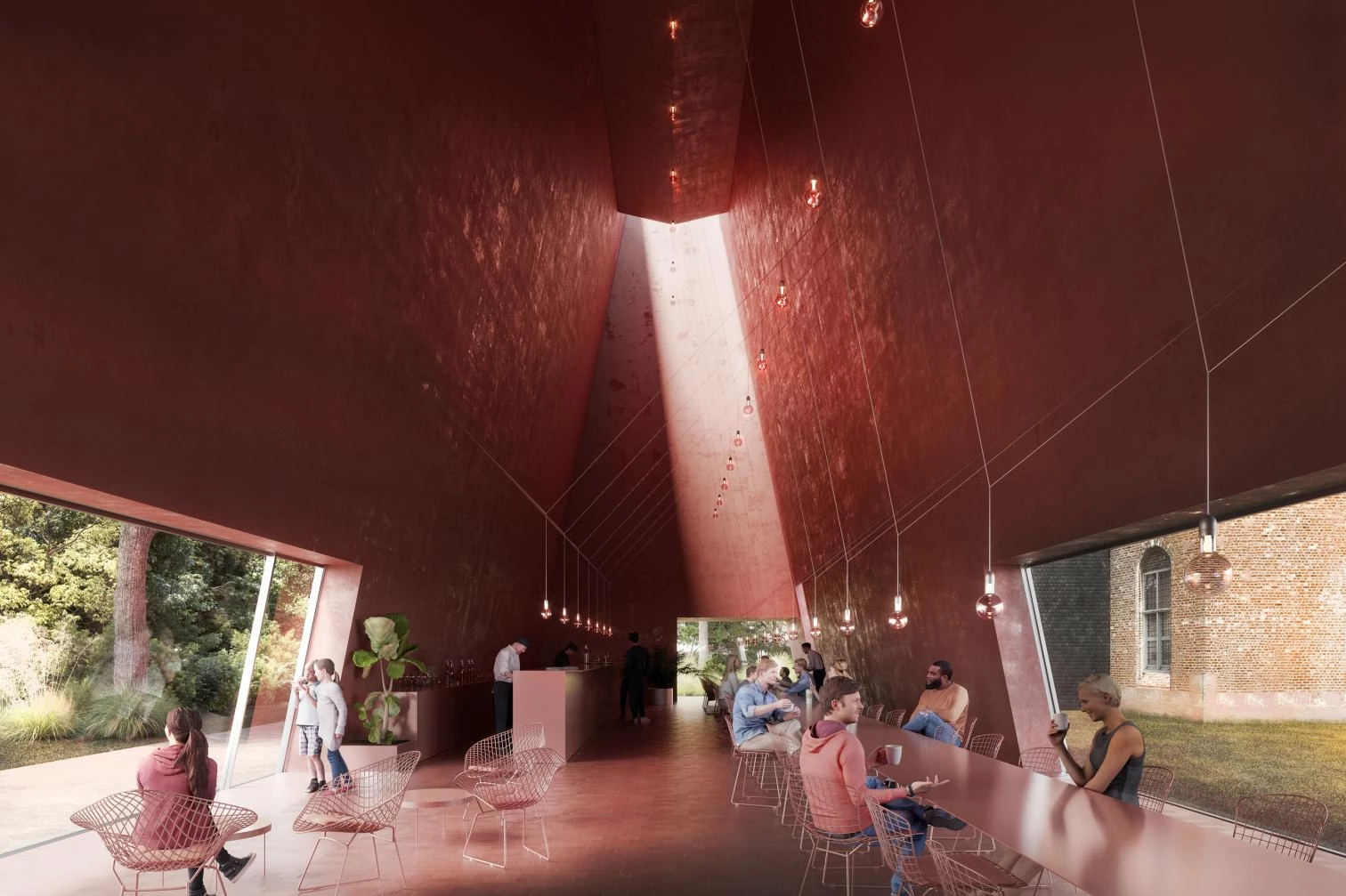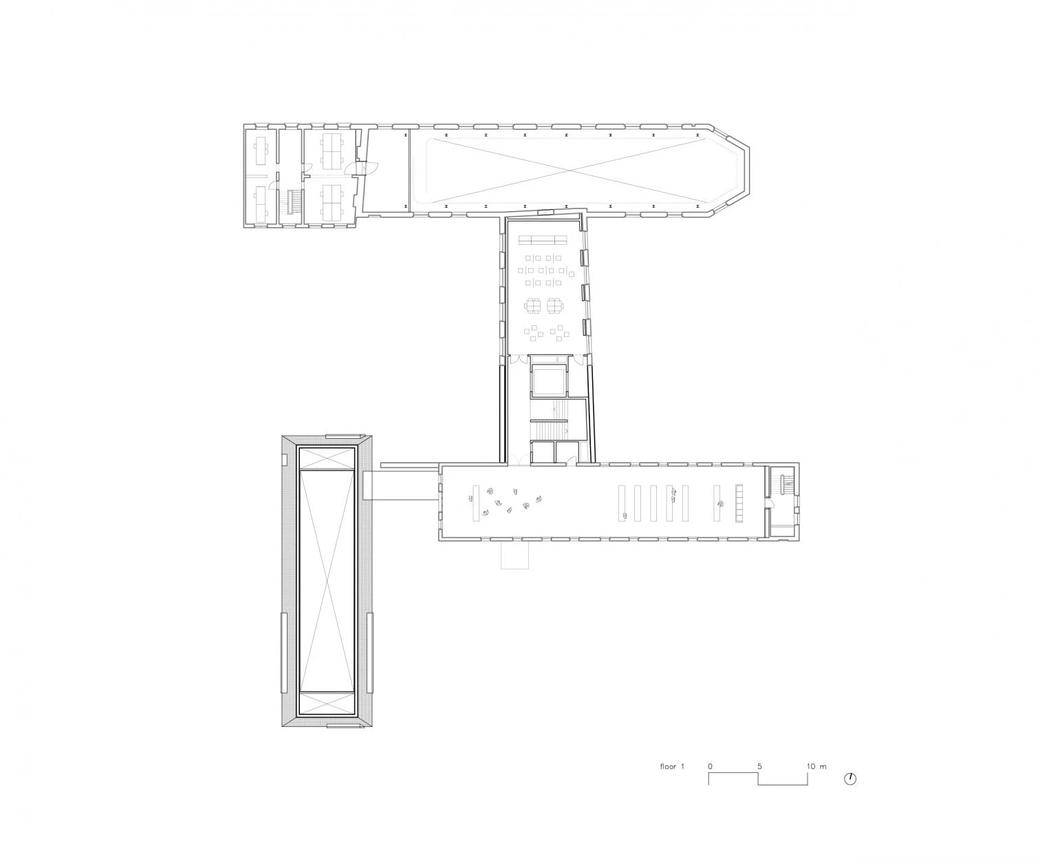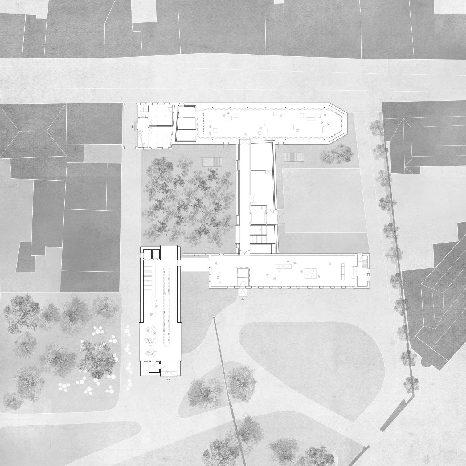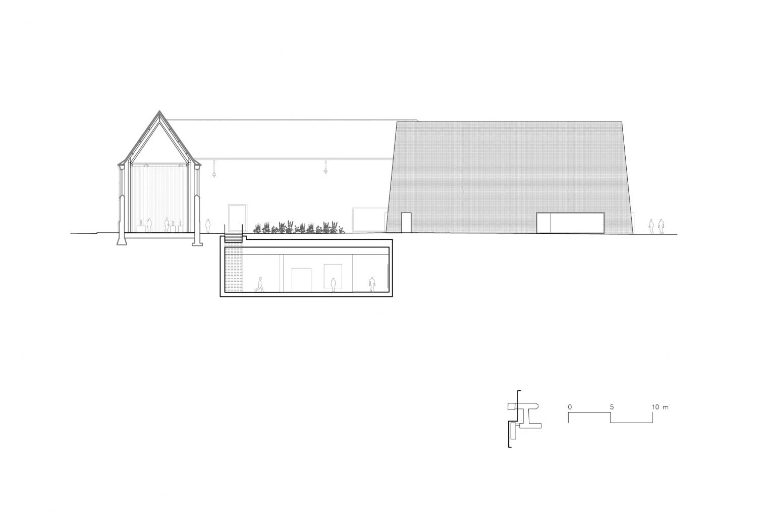 Basado en una interpretación amplia de la identidad, el proyecto consiste en la extensión y transformación del complejo histórico de la abadía de Groeninge en un espacio artístico para exposiciones temporales y eventos públicos. Como punto de partida, el proyecto persigue crear un nuevo tipo de museo: un lugar abierto a para todos usuarios, versátil, un espacio de vida urbano rodeado por el idílico el parque Begijnhof, situado en el centro de la ciudad. En primer lugar, la propuesta busca recuperar y poner en valor la espacialidad de la estructura original de la capilla y de los dormitorios de la abadía. A continuación, se agrega un espacio subterráneo destinado a exposiciones y se restaura el antiguo patio, insertando un nuevo jardín. Pero quizá, de todas las intervenciones la más visible sea la construcción de un nuevo pabellón del parque. Se trata de un edificio compacto y discreto cuyo diseño está basado en el diálogo con las estructuras históricas que lo rodean: tanto a través de su forma, una pirámide truncada que evoca la verticalidad de las cubiertas inclinadas circundantes, como de su disposición ortogonal respecto del complejo existente. A nivel material, la fachada del nuevo volumen se reviste con piezas de ladrillo de color oscuro que le confiere un imagen independiente dentro del conjunto.