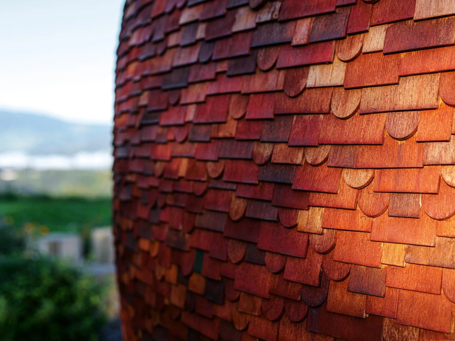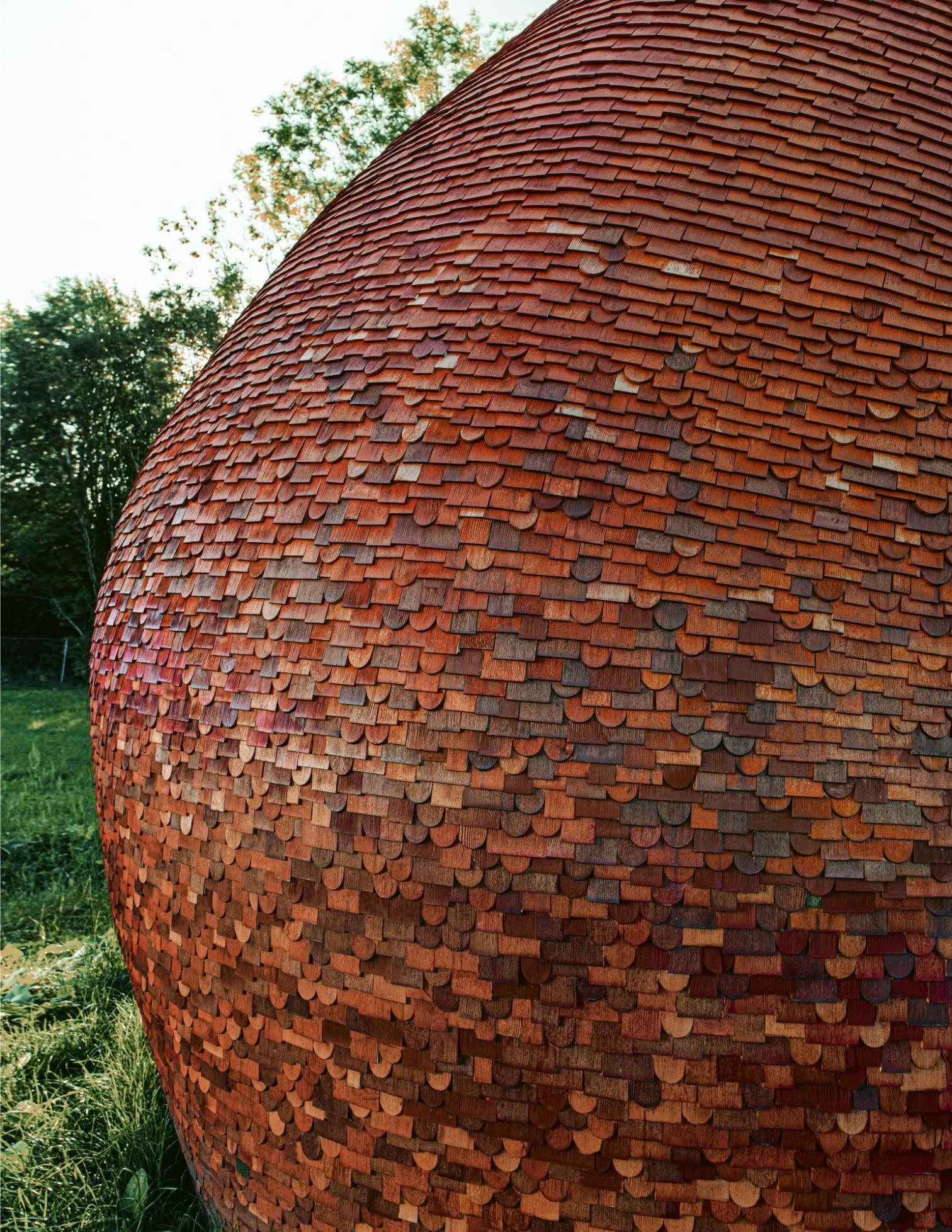 El objetivo del proyecto es concienciar acerca de la importancia de los espacios y materiales en el proceso del parto. Además de conectarnos con la naturaleza, la tierra y el barro permiten generar la estructura cónica de una manera sencilla, y lograr en el interior unos acabados uniformes con el modelado manual. El exterior está formado por tablillas de madera de diferentes formas, que protegen la envolvente de barro de las inclemencias del tiempo.
