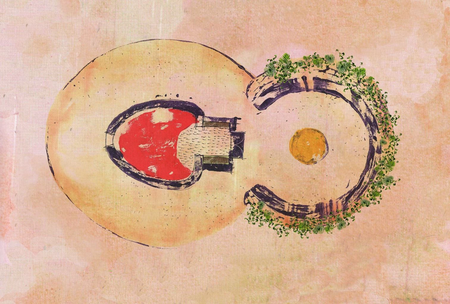 Luz, olores, colores, temperatura, texturas, ruidos… Debe ser algo angustioso abandonar el vientre de tu madre para llegar a este mundo. ¿Qué características debería tener ese primer espacio que nos recibe al nacer? ¿De qué material debería estar hecho para que el recién nacido y la madre se sientan abrazados, protegidos, curiosos el uno del otro? Creemos que debería ser una cueva de barro más que un ‘vientre’ exterior: una luz acogedora, una acústica que te lleve a querer cantar, texturas de arcilla fina —hechas de tadelakt, la técnica tradicional marroquí de cerámica vidriada, que aporta calidez, suavidad y color a los espacios— y yesos de tierras en cálidos tonos ocres, así como una juguetona envoltura de tablillas en varios tonos rojos.