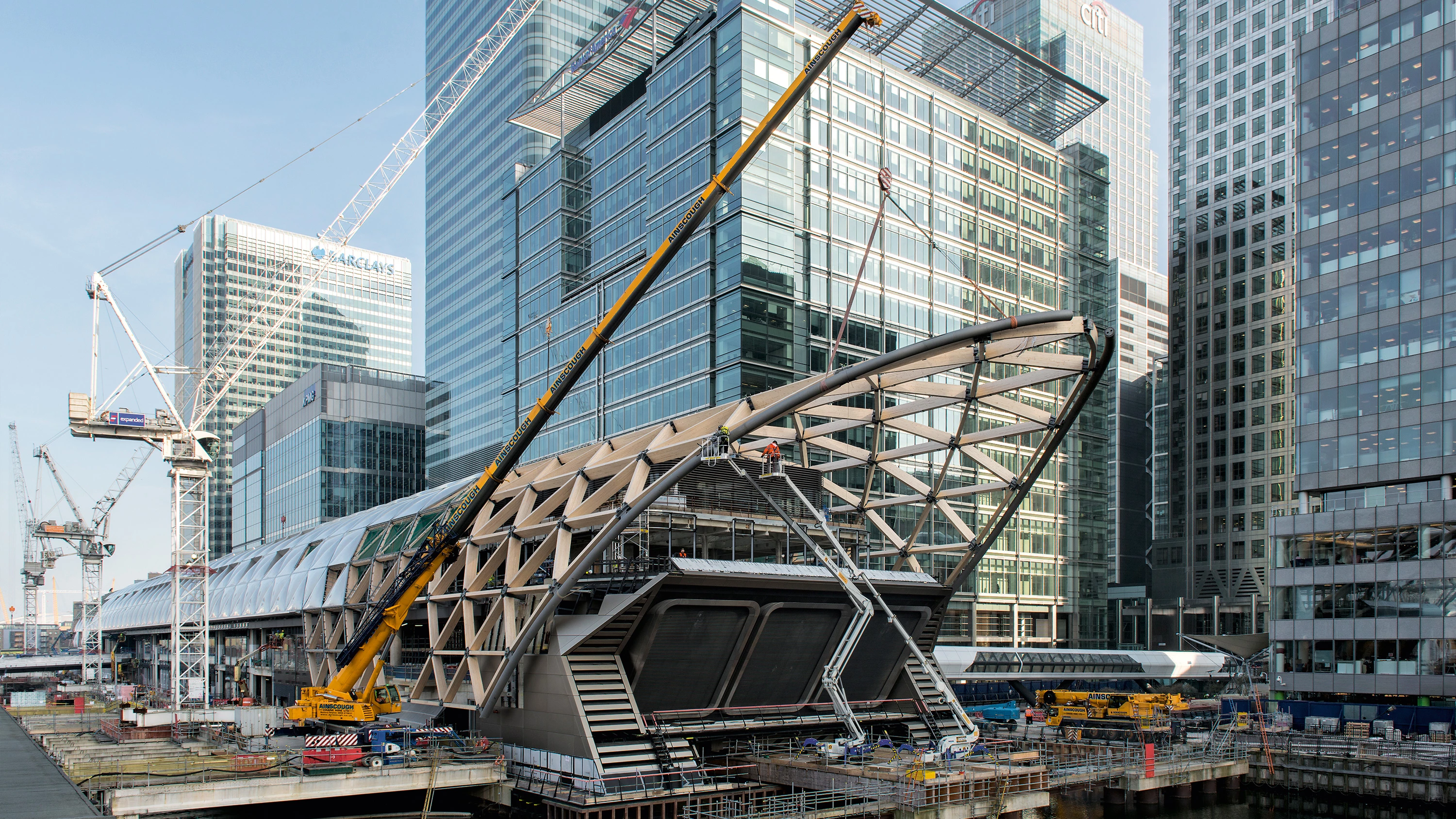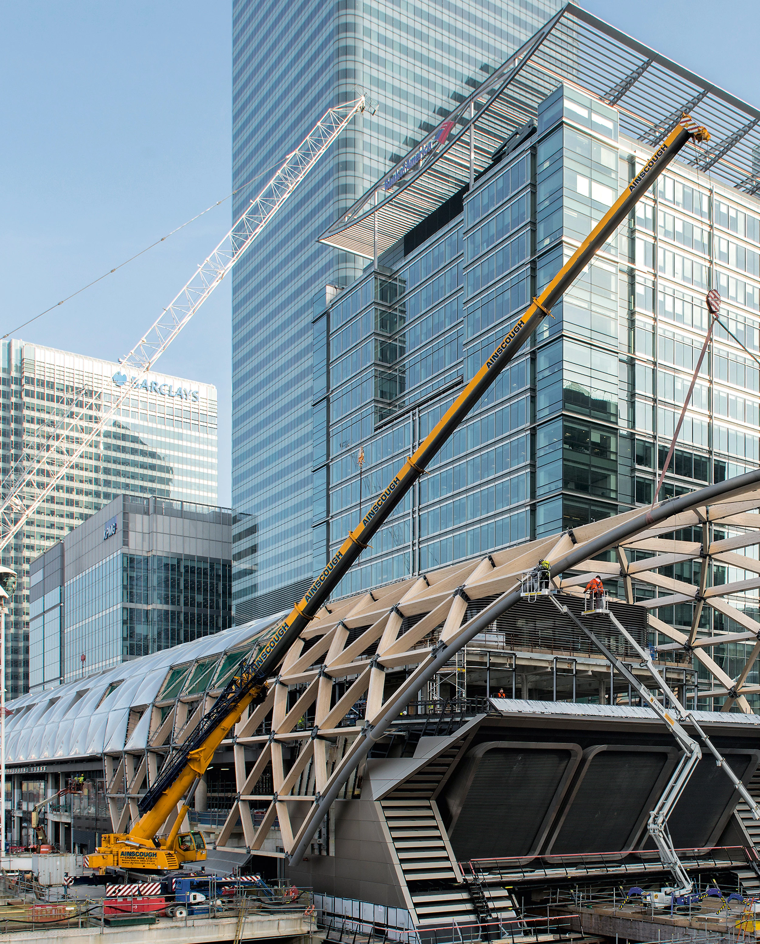 A fin de mejorar el tráfico en Londres, en 2007 se aprobó el mayor proyecto de infraestructuras de Europa: Crossrail, una conexión ferroviaria de 40 estaciones y con 42 kilómetros de nuevos túneles que atraviesa la ciudad de este a oeste. Norman Foster es el autor de una de las nueve estaciones de nuevo diseño que incluye el proyecto: Canary Wharf, próxima a la de metro con el mismo nombre construida por el estudio en los años 1990. Una cubierta de madera y cojines de ETFE, de 310 metros de largo y 30 de ancho, envuelve y unifica los accesos, las cuatro plantas comerciales con cafés y restaurantes y el jardín público de la azotea, ya inaugurado. Los trenes circularán a partir de 2018.