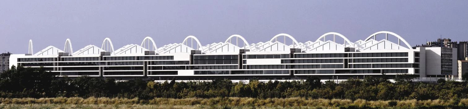 Entre los barrios de la Almozara y las Delicias, históricamente separados por las vías del tren, y junto a la antigua estación de Caminreal —obra de Gutiérrez Soto y hoy acondicionada como Museo del Ferrocarril— se sitúa la nueva intermodal de Zaragoza, un proyecto largamente esperado por la ciudad. Si bien el objetivo primero era hacer frente a las necesidades del recién estrenado trazado de alta velocidad Madrid-Barcelona, la ocasión se ha aprovechado para reordenar el ámbito, poniendo en conexión las calles existentes, las nuevas vías que se han abierto en los barrios contiguos, el parque natural del meandro del Ebro y el jardín de la Alfajería. Su relación con el centro urbano se consigue por medio de la reurbanización de los terrenos liberados tras la desaparición de la estación del Portillo, en los que se ha previsto una amplia dotación de zonas verdes y equipamientos.