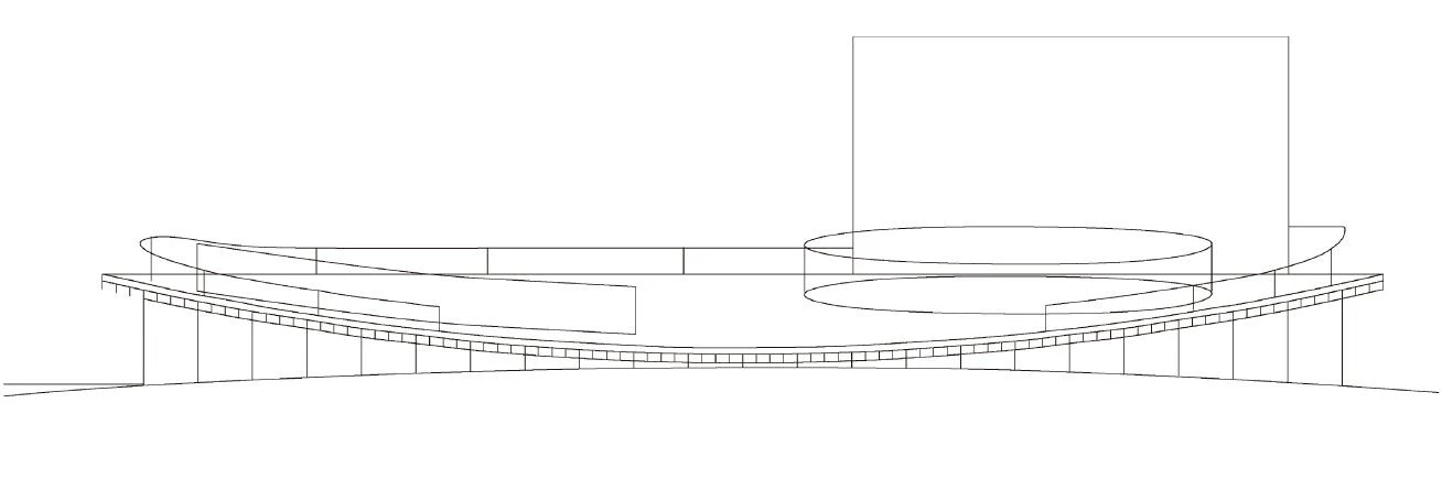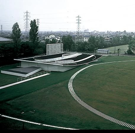El edificio se levanta sobre una extensa superficie de césped en una esquina del campus de la universidad regional de Ogaki, ciudad situada en la prefectura de Gifu, al oeste de Tokio. Concebida como una escuela de arte y diseño multimedia para artistas que emplean el ordenador como medio de trabajo, el centro alberga talleres, galerías de exposición y una residencia destinada al alojamiento de los estudiantes, con el fin de fomentar la convivencia y el intercambio de ideas entre ellos durante su corto periodo de estancia. Debido a la necesidad de disponer de espacios de gran altura para alojar los talleres y con la idea de evitar el impacto del volumen en el entorno, el edificio se entierra en el solar 1,8 metros respecto a la cota del terreno. A su vez, el plano de cubierta se curva ligeramente hasta tocarla superficie del suelo, describiendo una forma parabólica que permite acceder a la cubierta desde su punto medio a través de un único escalón. De este modo, la plataforma se convierte en una enorme plaza donde se localiza el acceso principal a todo el recinto y al mismo tiempo, se utiliza como área de exposiciones abierta al público sobre la que se disponen una serie de elementos metálicos de formas geométricas que protegen las escaleras delimitando el área de movimiento.