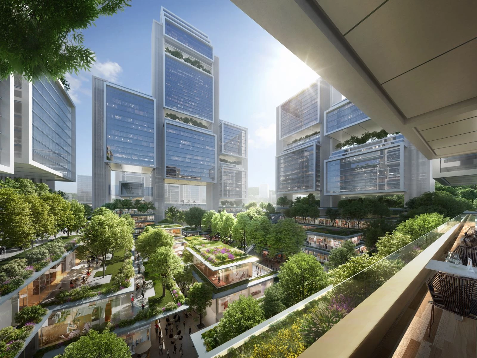 Un gran podio comercial se encuentra sobre el metro subterráneo y las estaciones de enlace interurbano. Una serie de torres de oficinas están concebidas como la puerta de entrada. Las aberturas en el nivel del suelo de los edificios marcan el acceso central a la estación de tren de alta velocidad, sobre la cual se sitúa un nuevo museo del transporte.