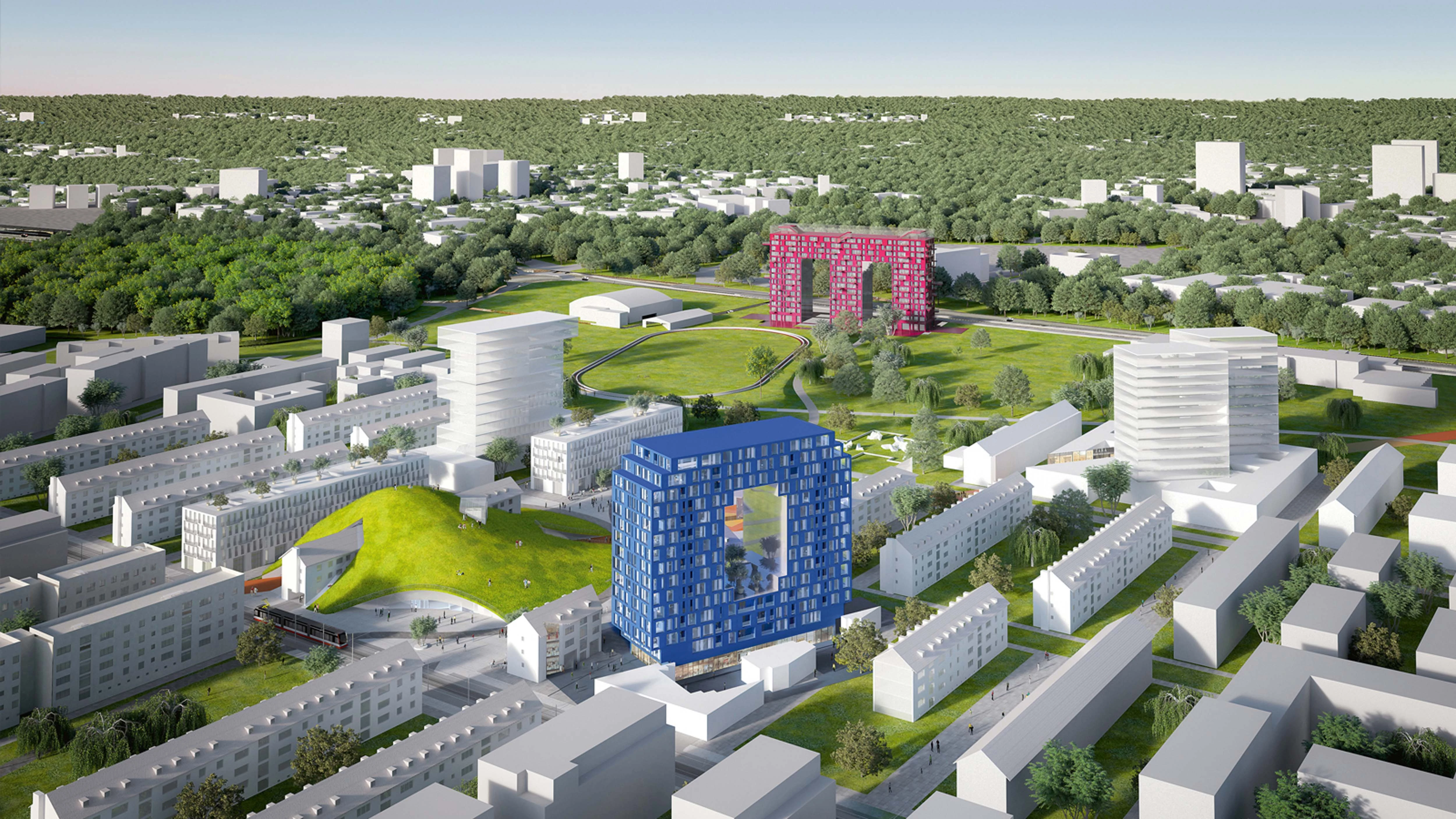 Una antigua base del ejército se convierte en un enclave residencial, con una colina que marca el centro e incluye espacios comerciales y comunitarios, y cuatro edificios en altura que forman la palabra ‘HOME’, dando la bienvenida a los nuevos residentes... [+]