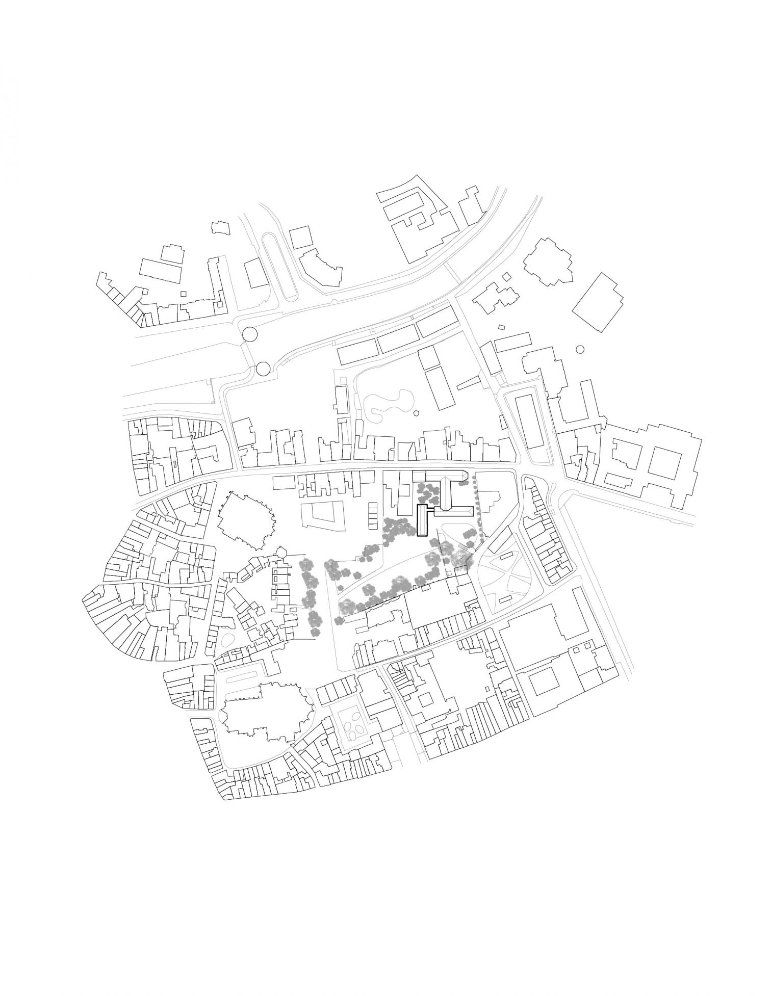 Desde el punto de vista del diseño urbano, el proyecto elimina elementos que no formaban parte del trazado original de la abadía, y reconfigura el espacio mediante la inserción del nuevo pabellón. Las intervenciones en la capilla y en el edificio de los dormitorios fueron mínimas y respetuosas. Se restauraron las ventanas, el techo y el pavimento original de terracota roja. Asimismo, las fachadas se renovaron siguiendo fielmente el dibujo original.