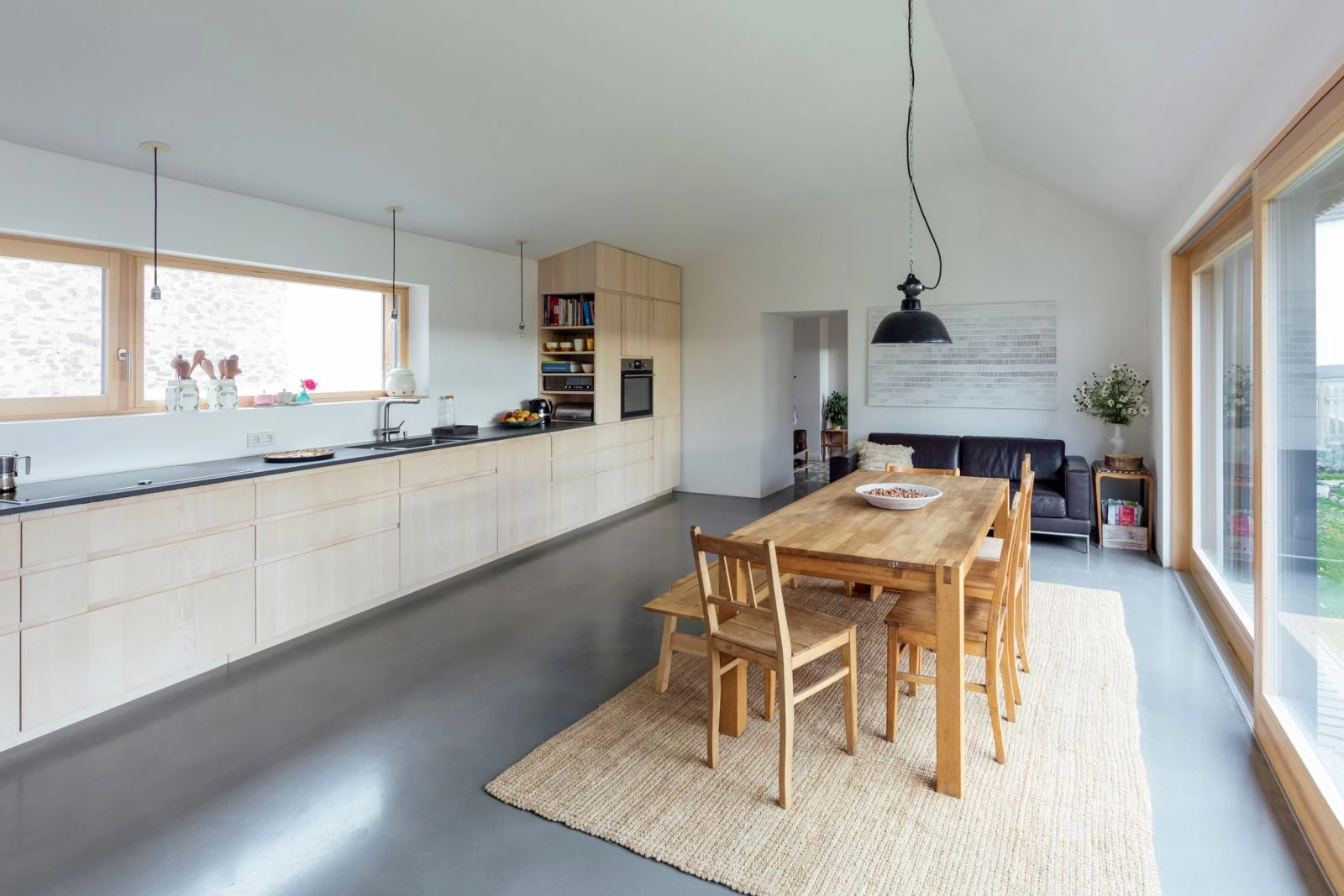 En el casco antiguo de la localidad alemana aún quedan algunas granjas de finales del siglo XIX, con sus casas y pajares de piedra volcánica. Una de estas casas es el punto de partida de la intervención que respeta el carácter original de la construcción, bajo estrictos criterios de conservación del patrimonio, utilizando materiales de bajo impacto medioambiental.