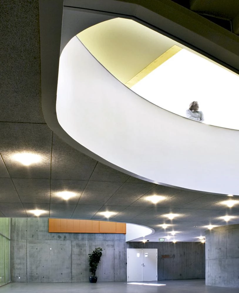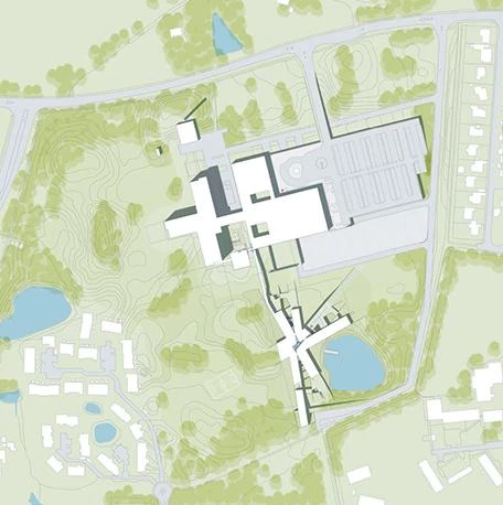 El hospital psiquiátrico en Elsinor, una ciudad portuaria de Dinamarca, está a medio camino entre las formas sugerentes generadas por las nuevas tecnologías y las rigurosas geometrías características de construcciones de carácter más funcional. En la investigación previa al diseño del proyecto no sólo se realizó un análisis exhaustivo del programa y de las necesidades del cliente, también se hicieron entrevistas a los usuarios del centro clínico, tanto al personal médico como a los pacientes. Las diferentes aportaciones de la investigación no generaron respuestas inmediatas de cómo debía ser un hospital psiquiátrico. Más bien señalaron cualidades contradictorias y ambiguas que debía tener: abierto y cerrado, centralizado y descentralizado, sensación de libertad y control, privado y público, que se añadieron en el proceso de diseño generando un edificio que fluctúa entre ser o no ser un hospital psiquiátrico.