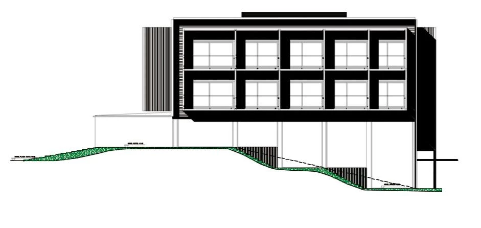 La geometría del hotel aprovecha los cambios de cota del solar para poder reforzar la solidez de su implantación, además de adaptar la distribución de las alturas en función de estas variaciones, sumando una nueva planta al sur.