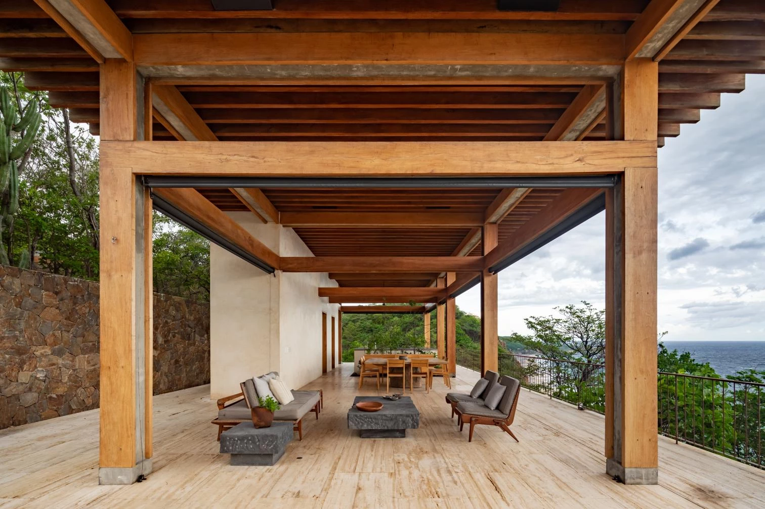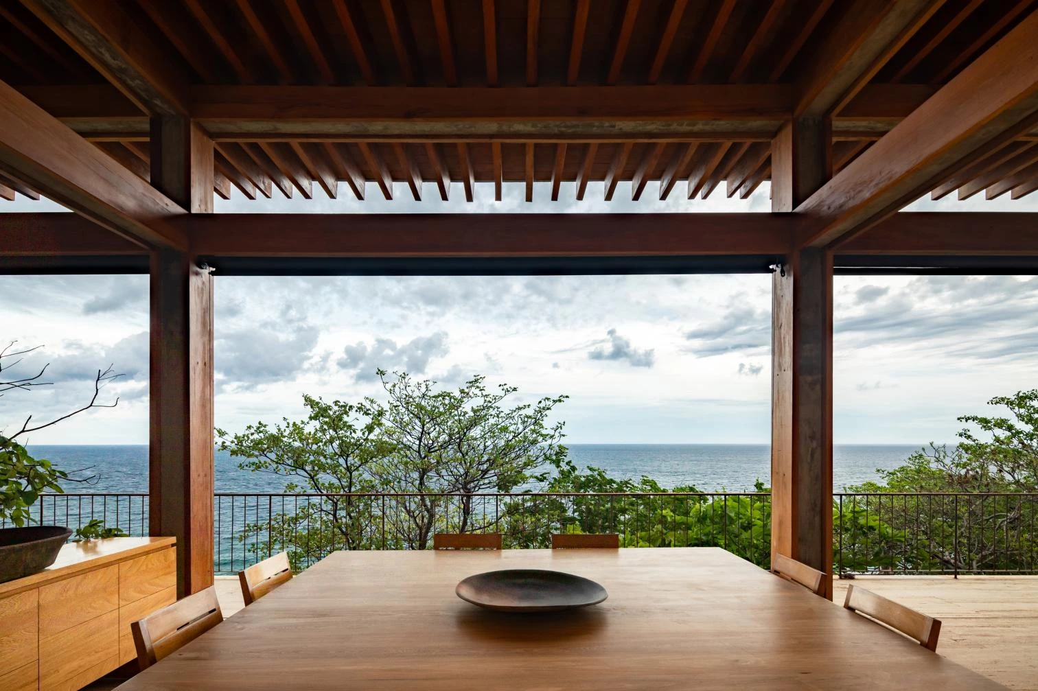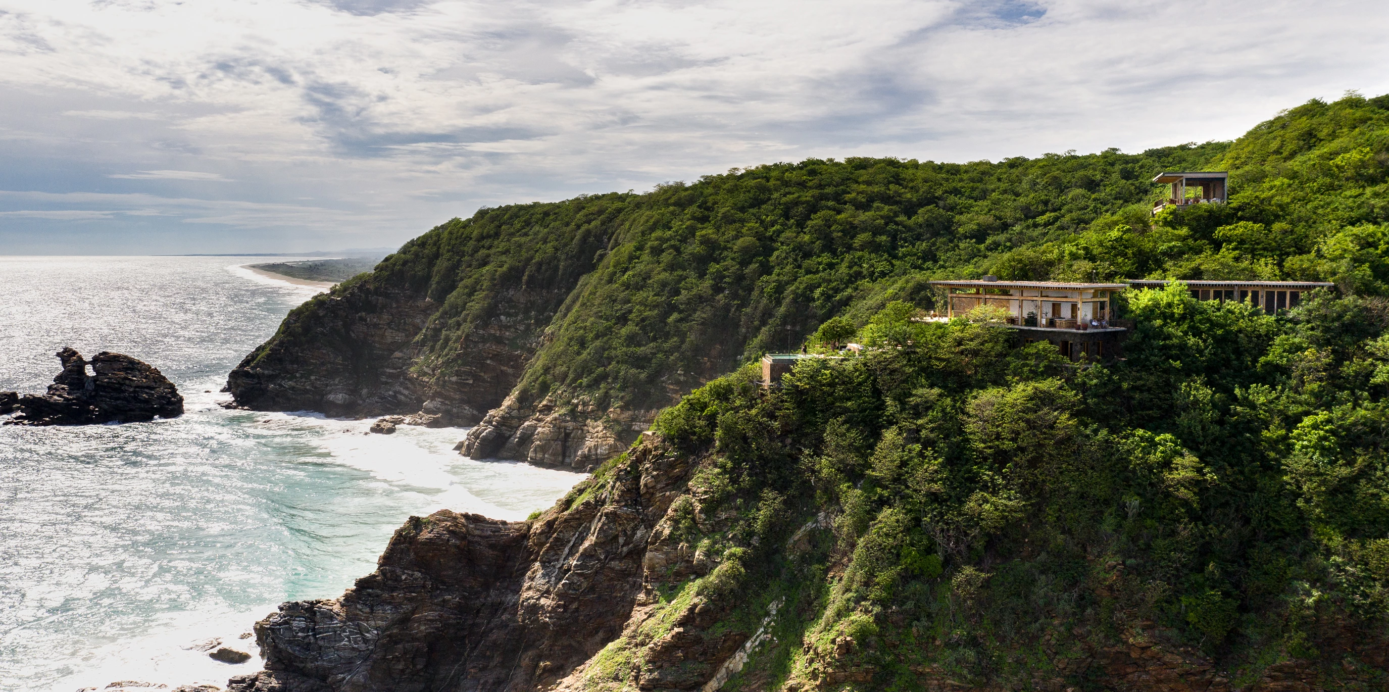 En la reserva El Torón y a pocos kilómetros del pequeño pueblo de Mazunte, entre las playas de Mermejita y Ventanilla que miran a la costa del Pacífico en el estado de Oaxaca, la firma de Ciudad de México liderada por Ignacio Urquiza levanta esta vivienda fragmentada en tres módulos principales independientes que se adaptan a la topografía accidentada, entre cerros y acantilados. De esta manera, la vivienda con 850 metros cuadrados de superficie construida busca controlar la escala para integrarse entre la vegetación existente, conseguir la privacidad adecuada y optimizar las vistas.