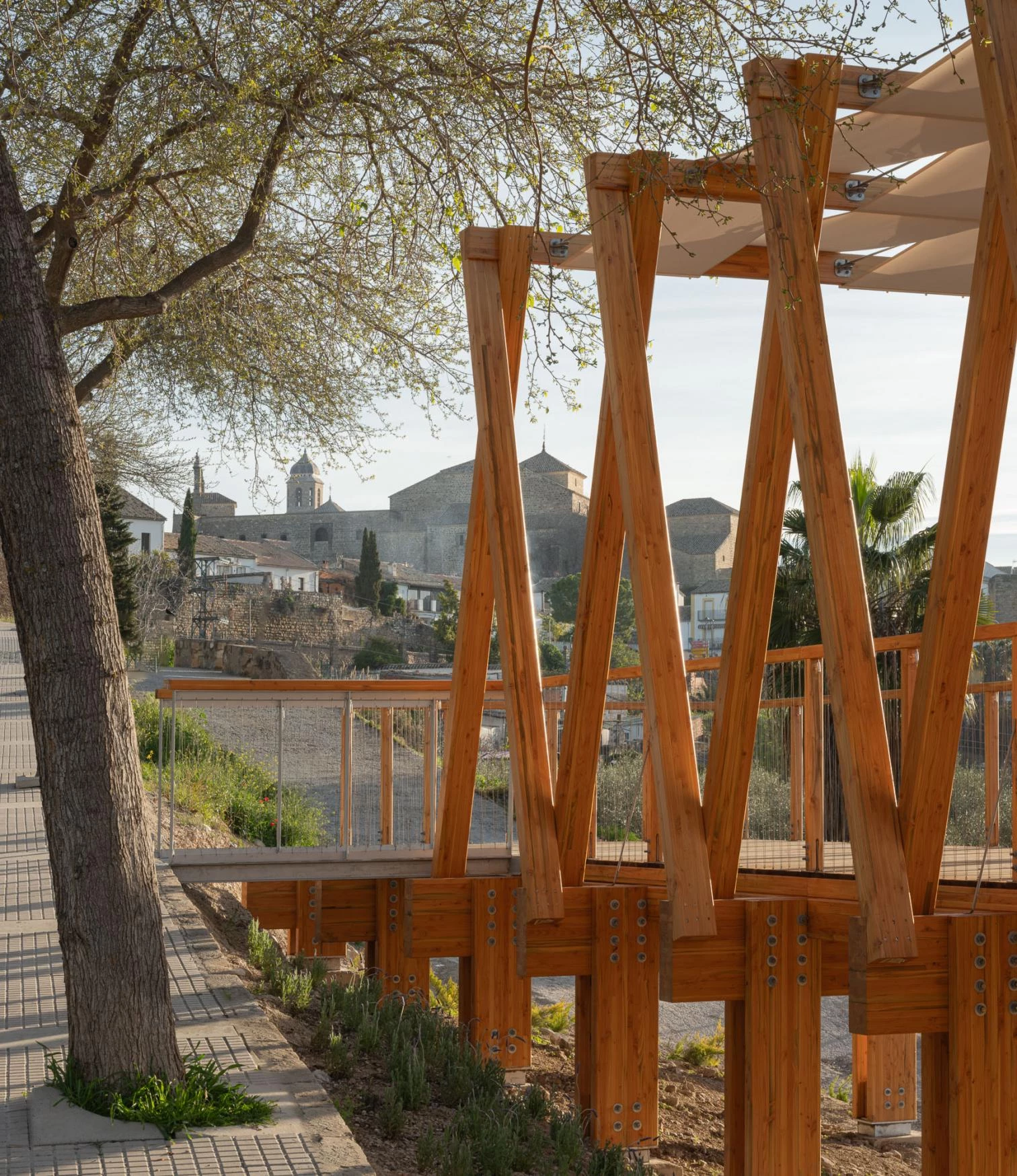 El mirador de San Lorenzo se sitúa en una plaza, junto a la Iglesia de San Lorenzo y sobre la muralla almohade que circunvala el casco histórico de Úbeda. Orientado al sur, el mirador ofrece vistas del valle del Guadalquivir y de los picos de la sierra de Mágina. La intervención incorpora pequeños espacios ajardinados y bancos de madera que permiten el encuentro, el descanso y la contemplación del paisaje, combinados con la solería empedrada de tradición locas y los asientos de forja negro.