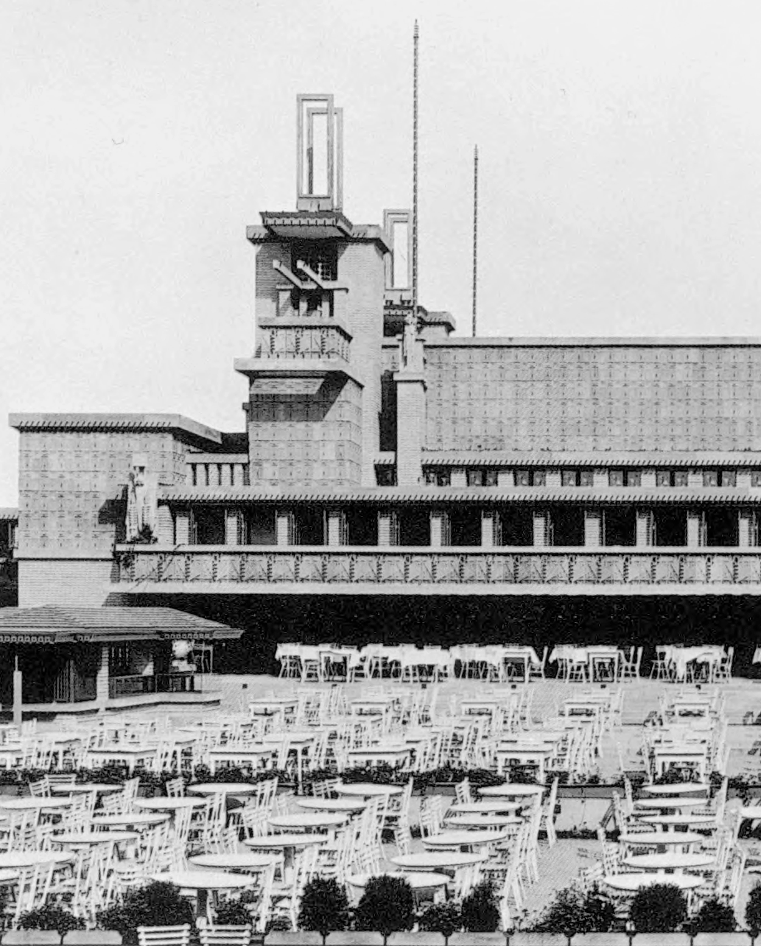 En su trascendental huida a Europa en 1909, Wright debió de disfrutar de la alegre vida de los Biergärten alemanes y austríacos, una afición que compartía con su amigo Ed Waller Jr., quien a su vuelta le propuso diseñar algo semejante para animar la recargada atmósfera de Chicago. Pero el arquitecto no sólo quería proporcionar con su edificio un marco arquitectónico para los placeres terrenales, sino también satisfacer la sensibilidad estética. Así es como nacieron los Jardines Midway.