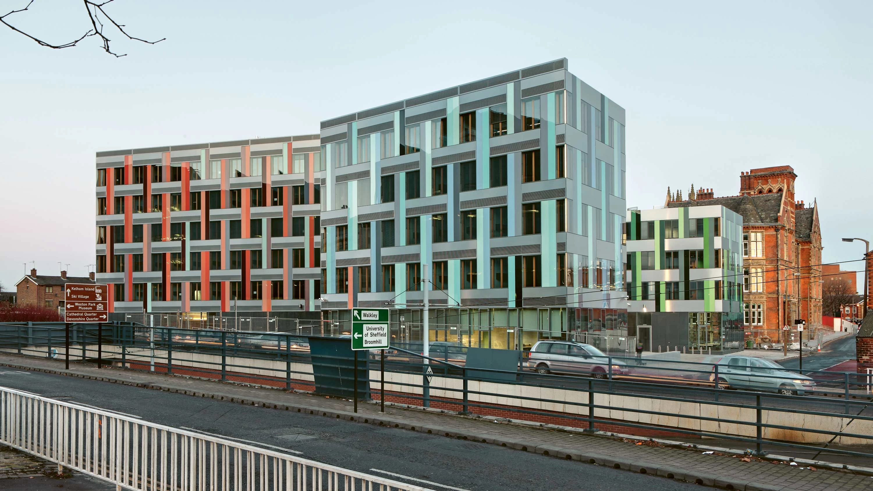 Situado en un heterogéneo contexto, entre una de las principales arterias de comunicación de la ciudad y el tranquilo campus de la Universidad de Sheffield, el proyecto se adapta a las trazas del plan director —también obra del estudio— para albergar en su interior los departamentos de Lenguas Modernas, Inglés e Historia. El edificio se organiza en tres angulosas alas, una para cada área de estudio, generando entre ellas distintos espacios públicos como el patio de entrada. Los tres volúmenes confluyen en un atrio central, que distribuye las comunicaciones internas y actúa como punto de encuentro entre las diferentes ramas del conocimiento.