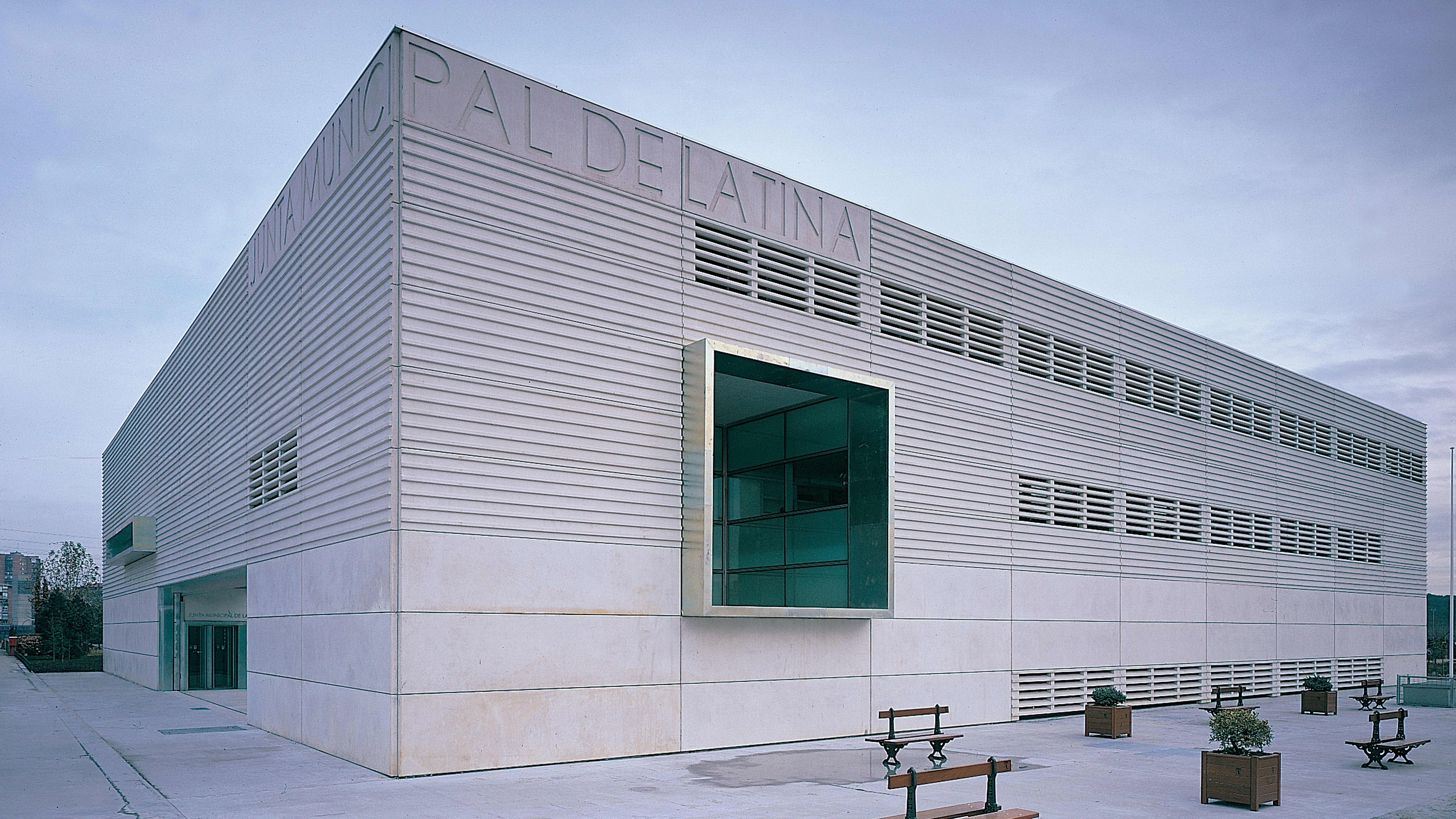 La nueva sede municipal de Latina debía dotar al distrito de los servicios administrativos y culturales que necesitaba, y reafirmar el papel de la arquitectura pública en la definición de su entorno, un tejido urbano disperso y fragmentado que ha crecido con gran rapidez desde los años cincuenta. Situada en una zona de reciente ordenación, dominada por la presencia de un hipermercado, nuevos parques y un intercambiador suburbano, la junta responde a la pérdida relativa de influencia simbólica de los edificios institucionales frente a otros destinados a usos lúdicos, comerciales o de transporte, que son los verdaderos centros de la vida urbana contemporánea.