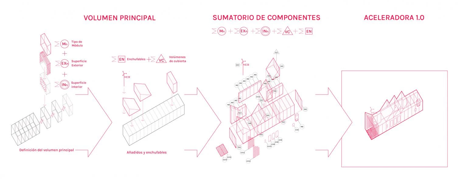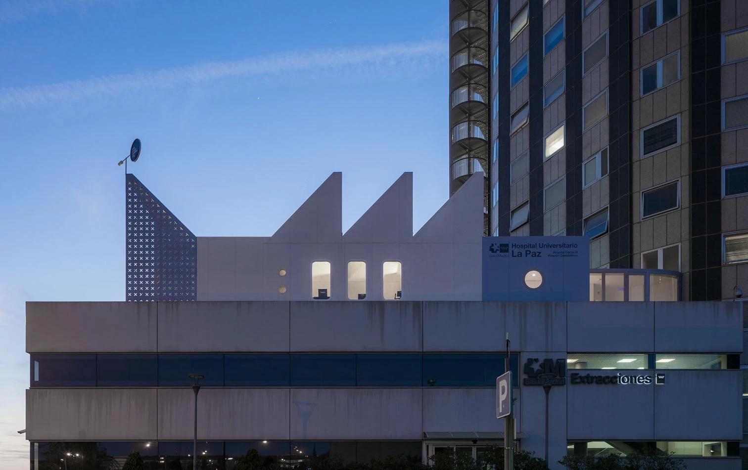 La Fundación Unoentrecienmil promueve la creación de un espacio terapéutico, que parte de un proyecto de investigación cuyos resultados han demostrado que el ejercicio físico puede ayudar a acelerar la curación del cáncer infantil un 17%, incrementar las posibilidades de supervivencia, atenuar los efectos secundarios del tratamiento farmacológico y mejorar su autoestima y calidad de vida. Antropólogos, médicos y diseñadores han colaborado con los arquitectos Clara Murado y Juan Elvira para levantar este pabellón industrializado, con 139 metros cuadrados de superficie construida, colocado sobre una cubierta del Hospital de La Paz de Madrid. La Aceleradora de la Paz es el primero de una serie de pabellones que se implementarán en diversos hospitales españoles.