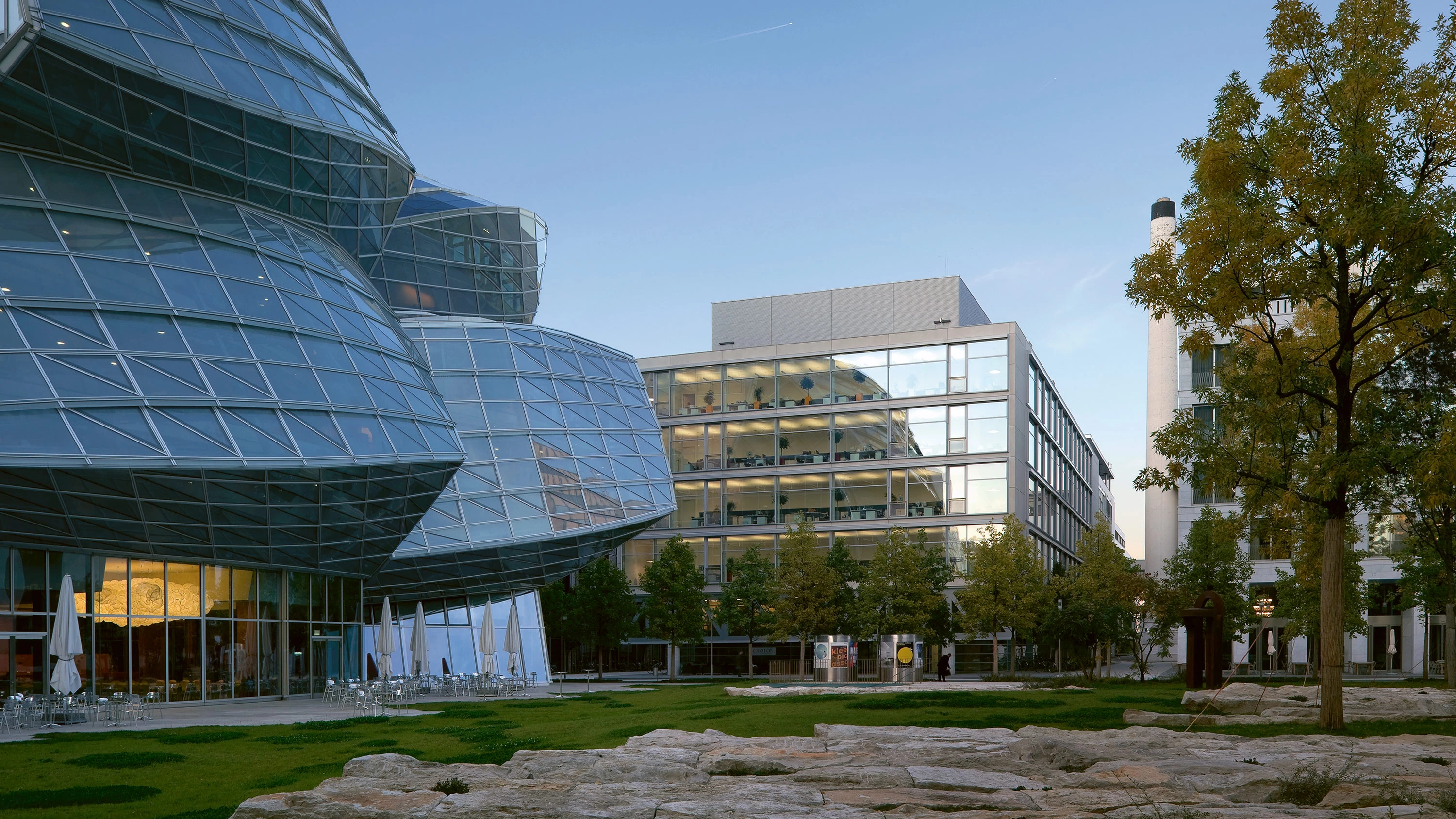 La estricta normativa urbanística se cumplió con creatividad y ligeros cambios: alturas de cornisa uniformes, galería porticada y entrada principal hacia la Fabrikstrasse, alineación de las fachadas a la calle y respeto a la trama urbana. Por su parte, el programa de necesidades estaba estrictamente definido: un restaurante cafetería en planta baja, con mayor altura de techos, y cuatro plantas de laboratorios.