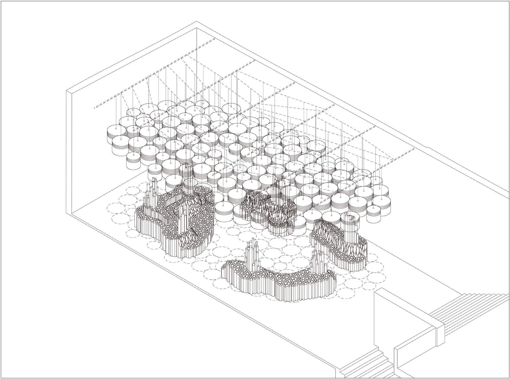 Como parte de la exposición ‘Africa: Architecture, Culture and Identity’ en el Museo Louisiana de Arte Moderno, la instalación recrea la sensación de estar bajo la sombra de un gran árbol. Este poderoso símbolo, presente tanto en la mitología africana como en la nórdica, se usa como puente entre dos culturas aparentemente contrarias. El proyecto está formado por dos elementos principales: un techo suspendido que genera una atmósfera íntima y una base escalonada donde los visitantes tienen libertad para apoyarse, tumbarse o sentarse. Por encima de los troncos elevados, un sistema de iluminación artificial imita el movimiento del sol a lo largo del día, dramatizando así la experiencia sensorial.