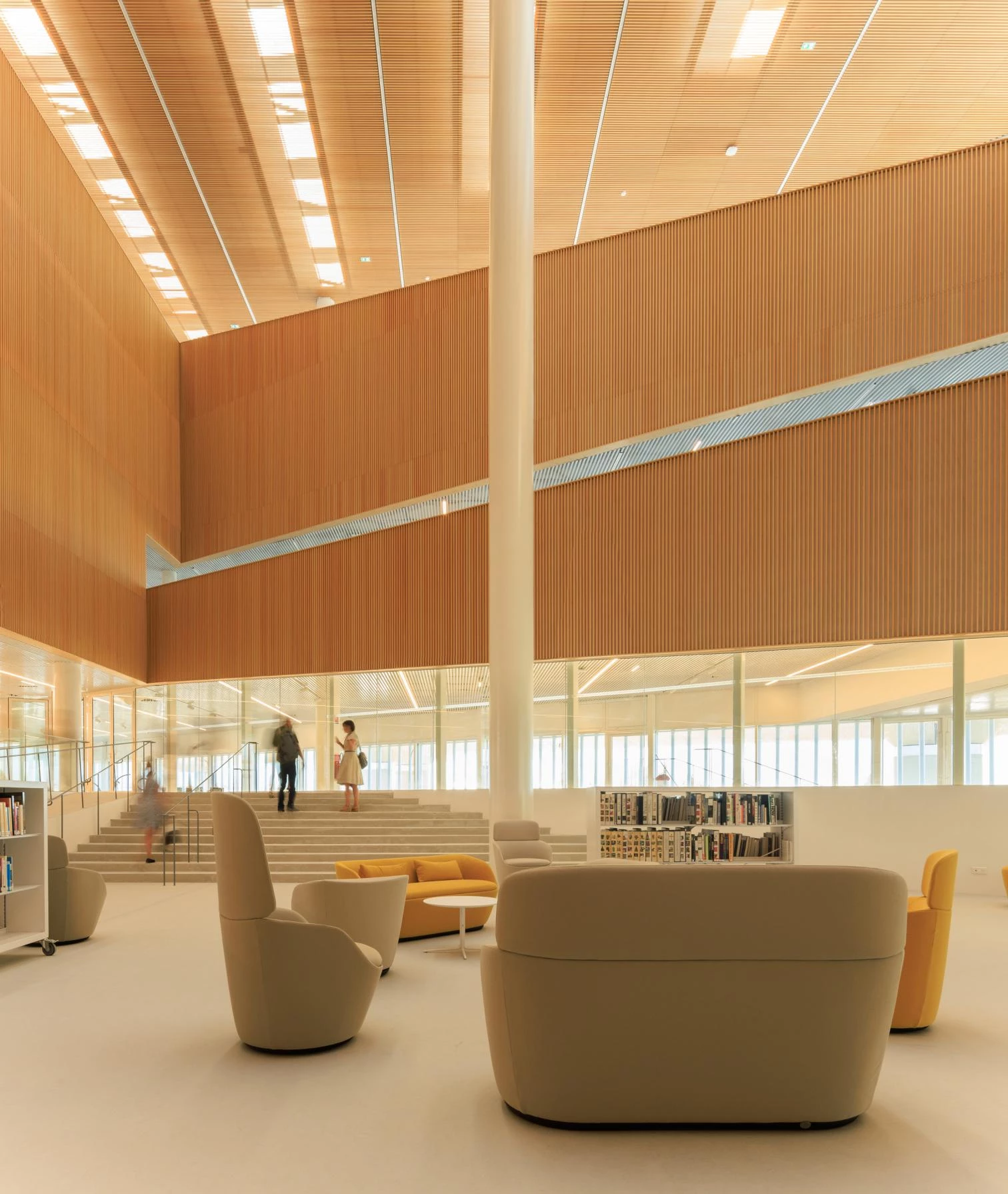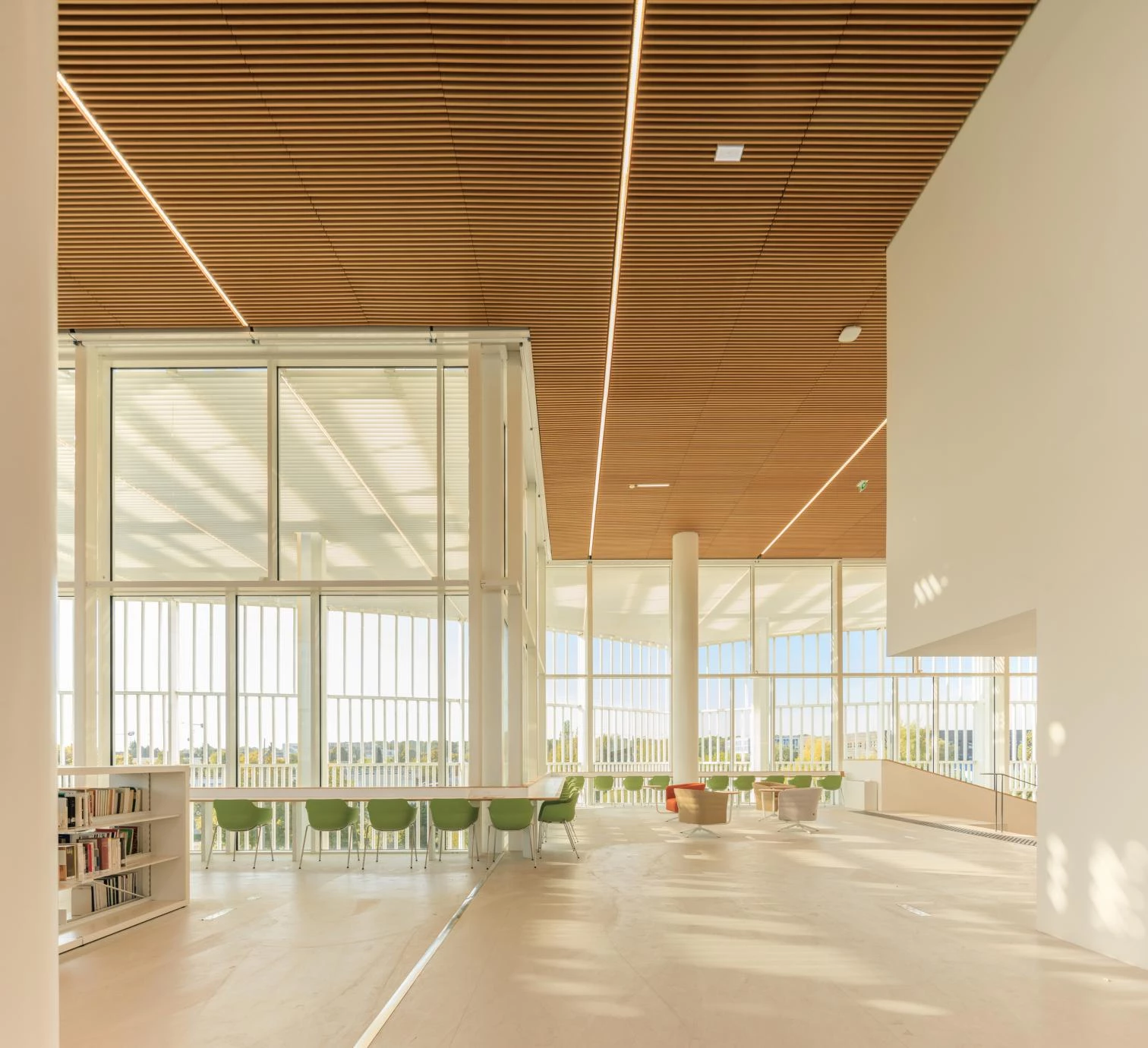 Al área de silencio se accede de manera fluida desde las gradas alrededor del vacío central del fórum. Esta área de lectura se divide en dos niveles, convirtiéndose en un paisaje que se visualiza en su totalidad desde el punto más alto. Esta atmósfera se acentúa con la presencia de la vegetación exterior que rodea casi toda la planta. La cubierta es clave en la configuración de este espacio, y está concebida como un filtro, con lucernarios longitudinales que crean una iluminación natural y homogénea.