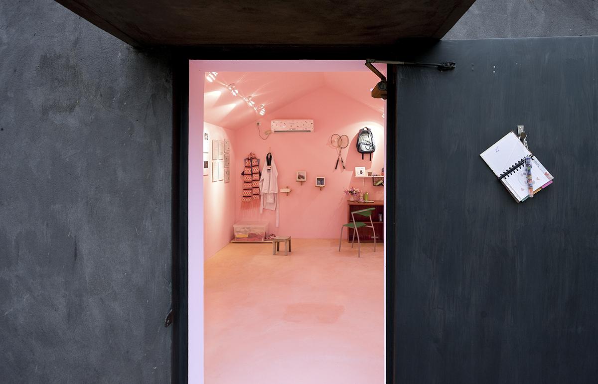 El acceso al pabellón está restringido al público y solo es visible a través de una mirilla. El espacio interior está pintado en rosa, el color favorito de Hu Huishan, y algunos de sus objetos personales son iluminados por la luz que entra desde un tragaluz.