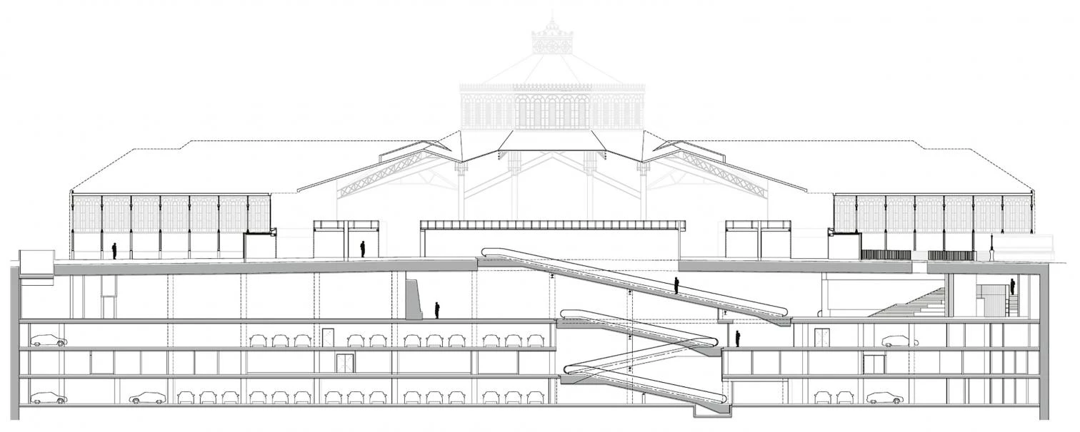 Además de añadir varios niveles subterráneos, el proyecto para el Mercado de Sant Antoni, que ocupa una manzana del Ensanche barcelonés, incluye la rehabilitación el edificio y la reordenación del espacio público circundante.