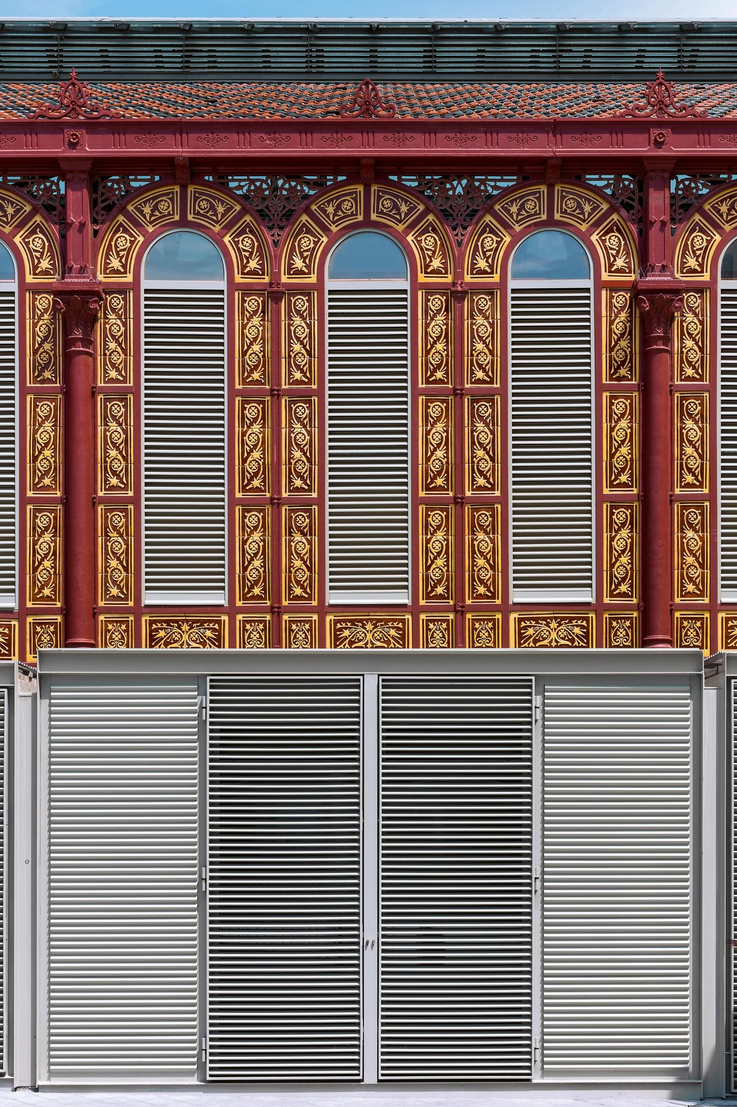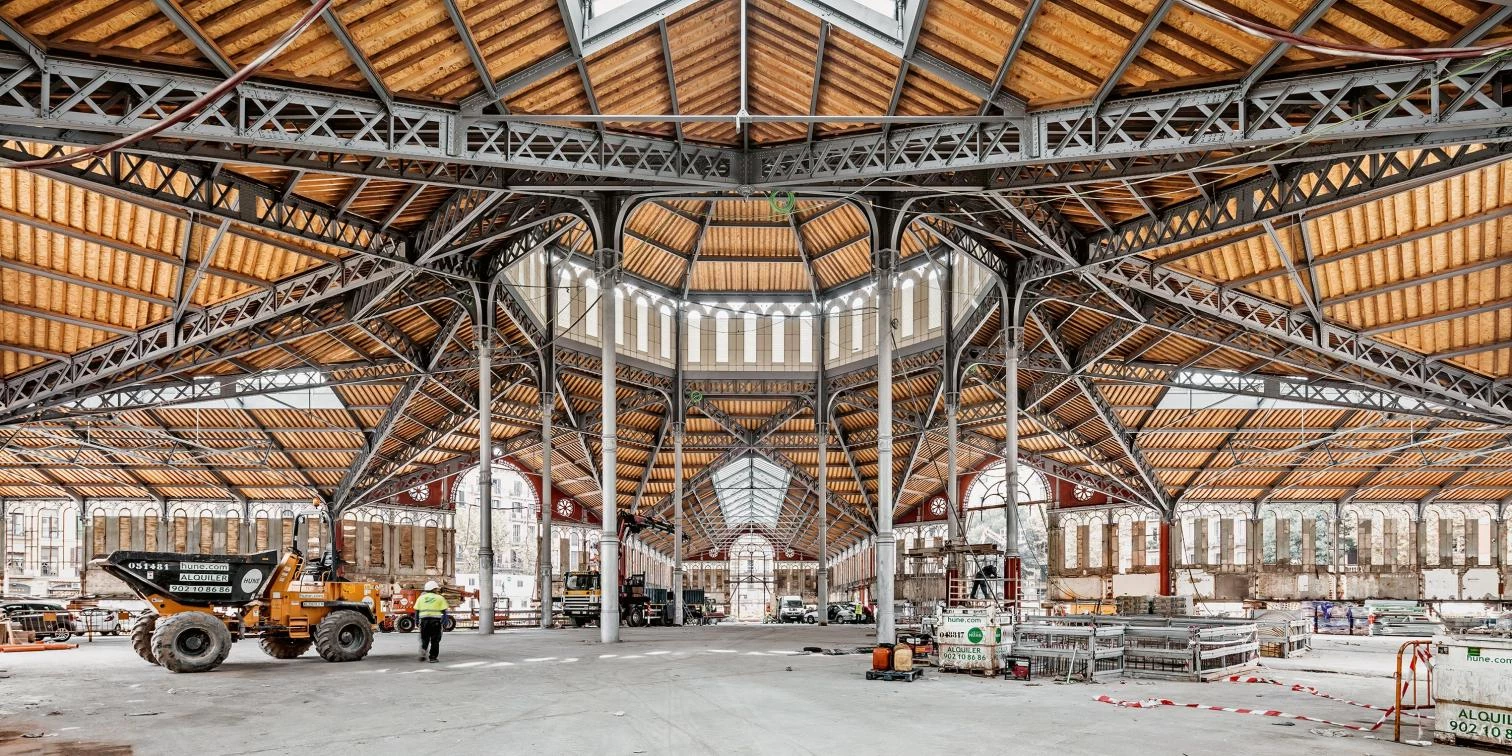La propuesta comprende la restauración minuciosa de los diferentes elementos constructivos históricos, y especialmente de aquellos que componen la cúpula central y la cubierta, bajo la que se distribuyen todos los puestos de venta.