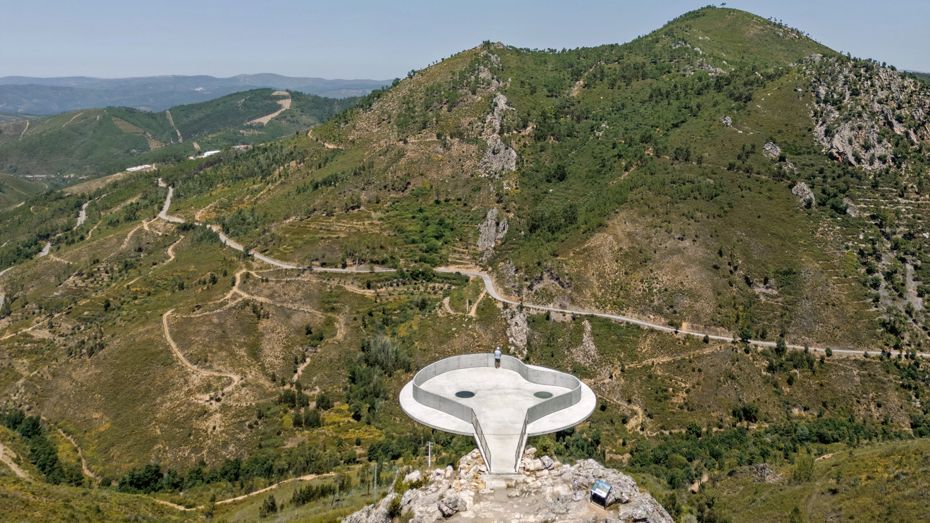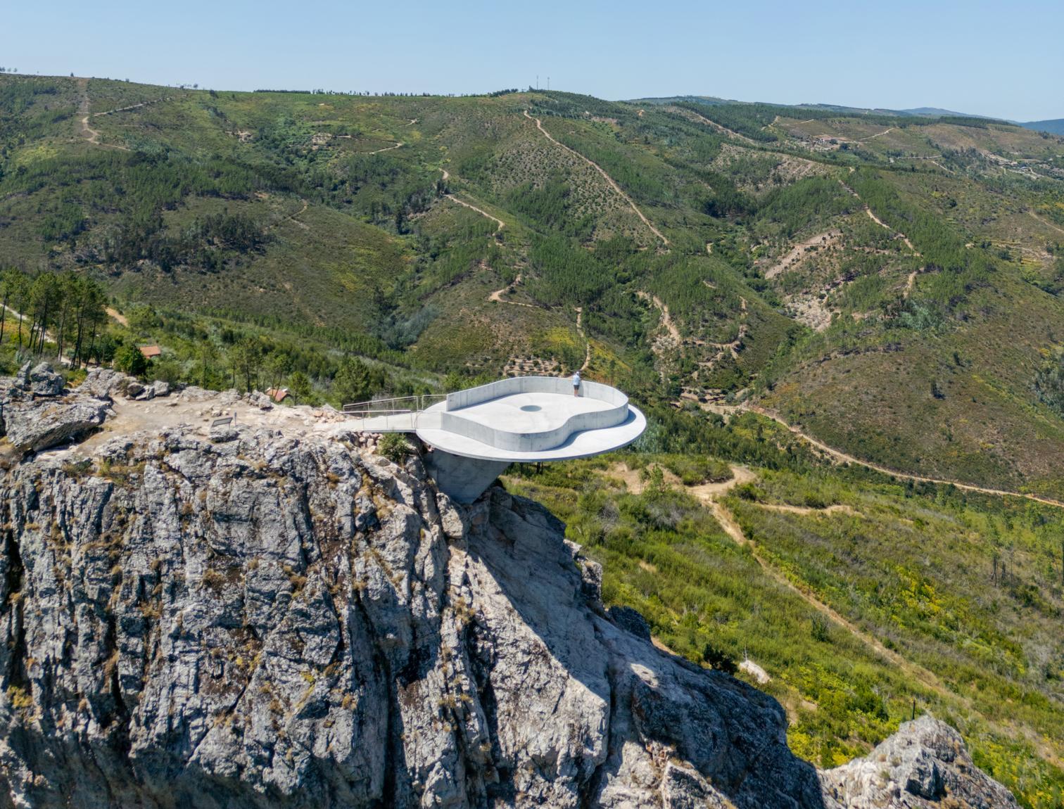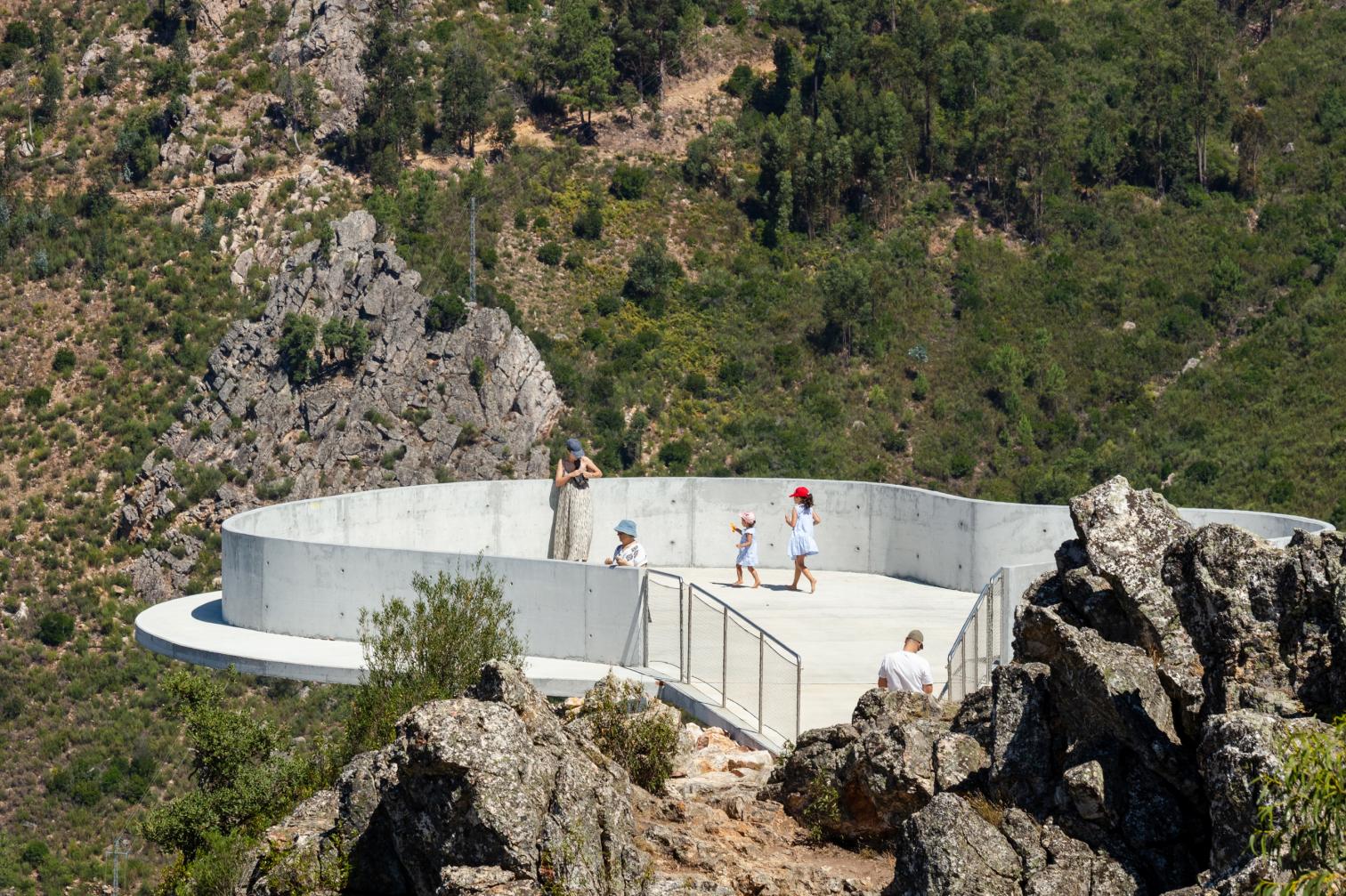 Aunque Portugal sea país marinero por excelencia, su interior está surcado por macizos montañosos en general menos conocidos, pero cuya belleza no resultará extraña a quien haya leído a Eça de Queirós o a Miguel Torga. En uno de estos escenarios montesinos, las estribaciones de la Serra do Moradal, desde ahora el viajero podrá detenerse en un mirador que, habilitando un área de descanso en la confluencia de una carretera comarcal y una senda popular entre los excursionistas, se proyecta sobre un peñasco para ofrecer vistas incomparables del valle a sus pies.