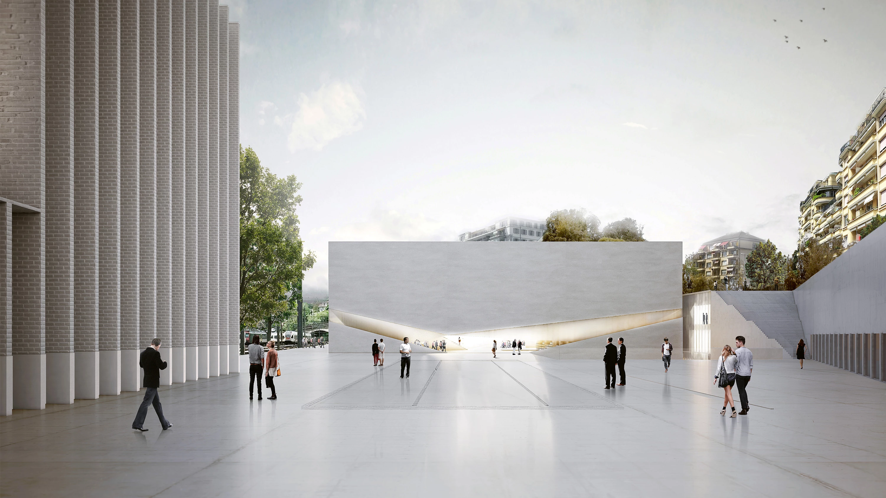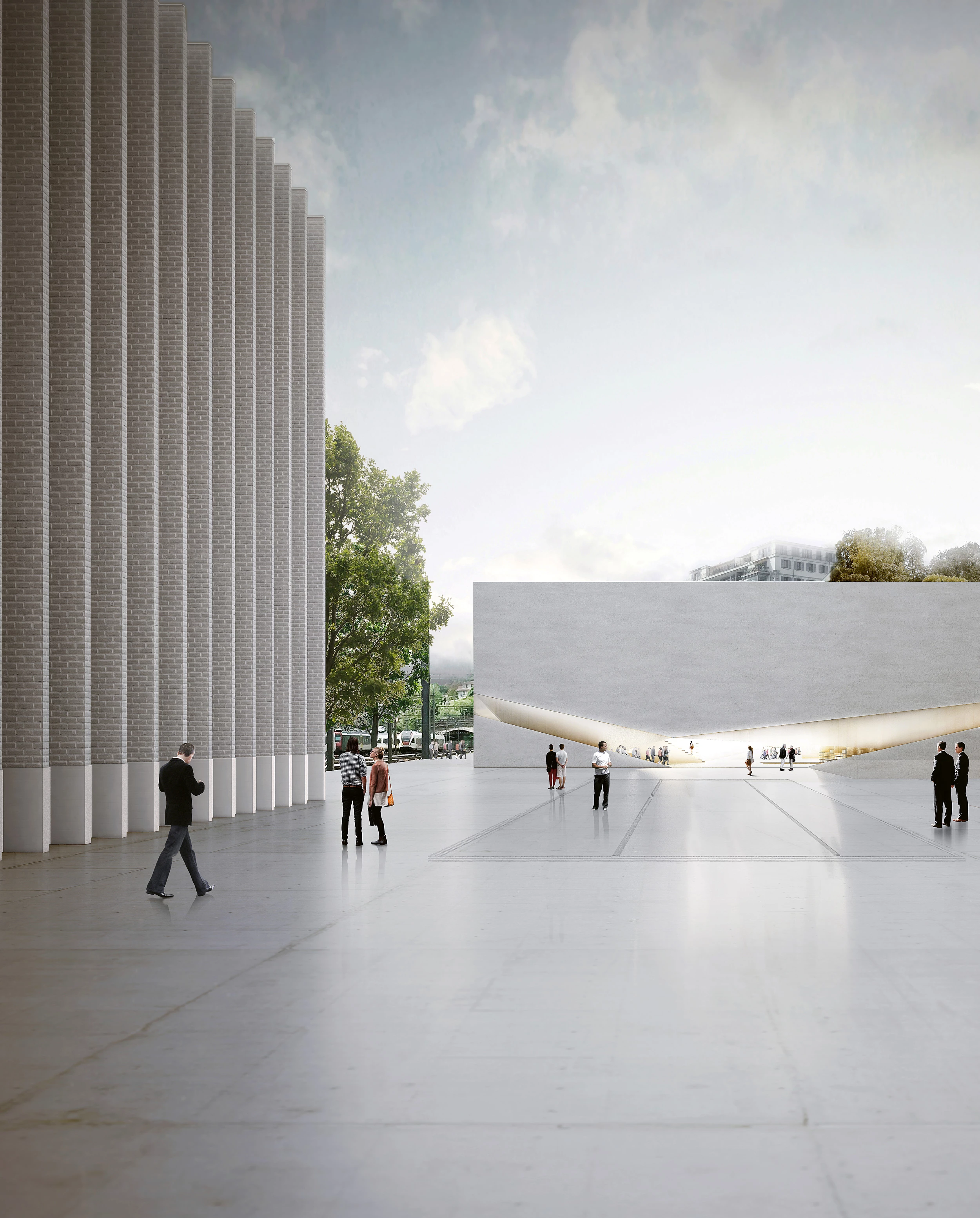 Con esta premisa como punto de partida, la intervención prevé la construcción de sedes para las instituciones museísticas más importantes de la ciudad y, a la vez, recuperar un espacio degradado junto a las vías del tren. Así, las nuevas dotaciones culturales se disponen en torno a un gran espacio público alargado, en cuyo extremo oeste se levantará un edificio de planta cuadrada que albergará dos museos superpuestos: el Museo del Diseño y de las Artes Aplicadas Contempóraneas (MUDAC), alojado en la planta primera; y el de fotografía Musée de l’Elysée, colocado bajo rasante. El espacio entre ellos acoge los accesos y funciona como una extensión natural de la explanada pública. Además, está concebido como si fuera una gruta que se abre en sus cuatro costados y en la que el techo y el suelo, ambos de carácter topográfico, se tocan en tres puntos que, al mismo tiempo, resuelven la estructura del edificio y las entradas a los museos...[+][+]