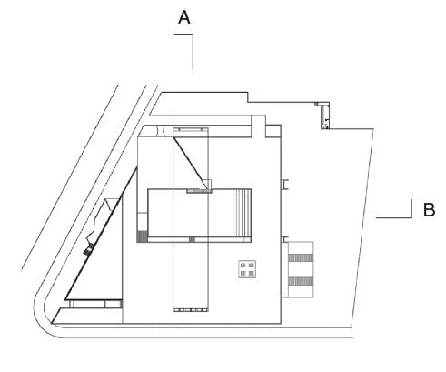 Esta pieza horizontal, que salva una luz de sesenta metros, es, además de una escultura en sí misma, un elogio de la técnica. Para resolver el desafío estructural que supone un vano de estas dimensiones se tensionan los cables de la armadura, se minimiza el peso propio de la losa aligerando el interior y se introducen elementos elásticos en los apoyos que permiten la libre dilatación de cada componente. Entre los soportes y la viga se deja libre una franja de veinte centímetros que, además de independizar visualmente los dos elementos, permite reemplazar con facilidad los elastómeros que se degradan de forma más rápida que el resto de los materiales.