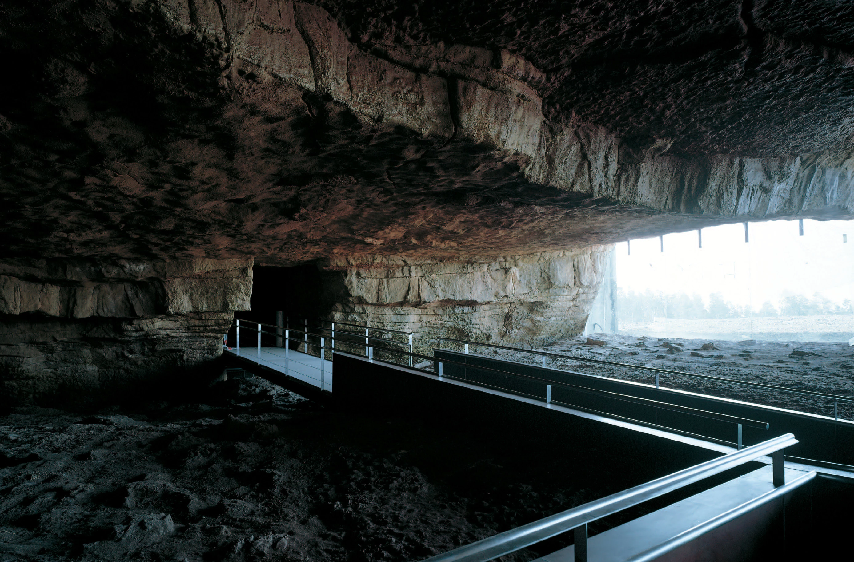 En la cueva de Altamira, cerca de Santillana del Mar, las pinturas rupestres de la Edad de Piedra fueron descubiertas en 1879 y desde entonces el número de visitantes fue creciendo hasta poner en peligro su conservación. Cerradas desde 1977, estas representaciones figurativas de bisontes, caballos y ciervos han podido ser contempladas desde entonces por tan solo 35 personas al día, lo que llevó a plantear en 1992 la construcción de una réplica en las inmediaciones que permitiera su difusión entre el gran público. A unos cien metros del emplazamiento del original, el edificio se implanta en la ladera opuesta de la colina, fuera del área impluvial de la cueva para evitar alteraciones de humedad que puedan afectar a las pinturas. Nuevas plantaciones de robles, pinos, abedules y avellanos separan el original de su réplica, al tiempo que ponen de manifiesto la voluntad de restituir el paisaje que guía la propuesta.