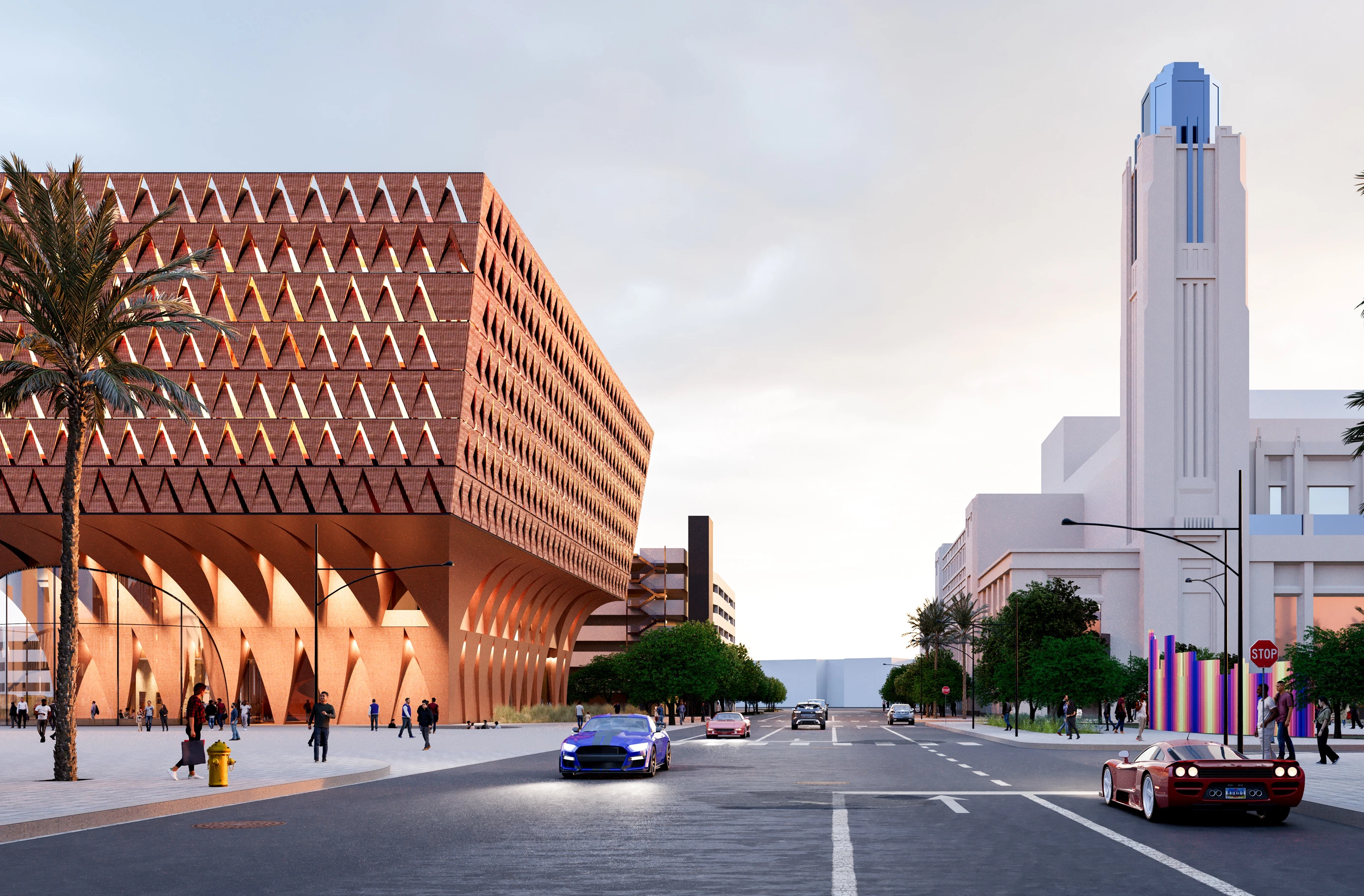Inspirado en el desierto de Mojave y la tradición constructiva local, el proyecto de Francis Kéré presenta dos pisos de espacios expositivos elevados sobre un vestíbulo y plaza abierta. El comienzo de la construcción, con un coste estimado de 150 millones de dólares, está previsto para antes de febrero de 2027.