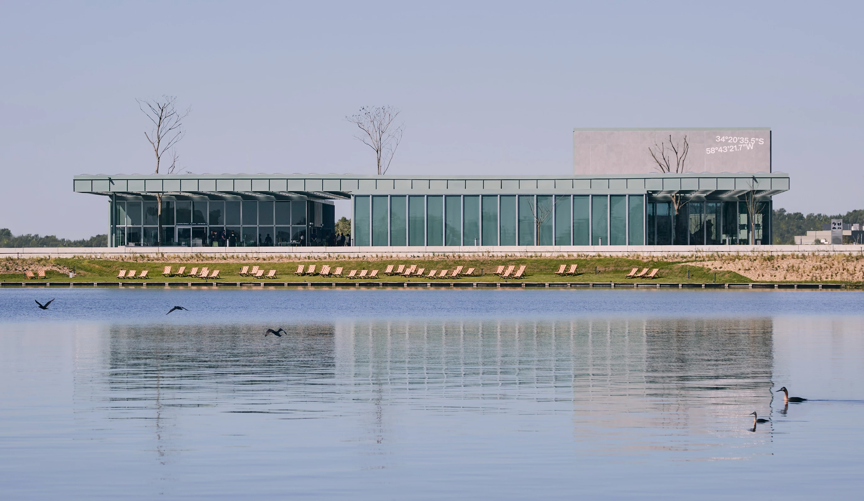 La secuencia del eje lago-museo-bosque se completa con la incorporación de parterres vegetales que controlan la humedad, aljibes para reutilizar las aguas pluviales y paneles solares fotovoltaicos.